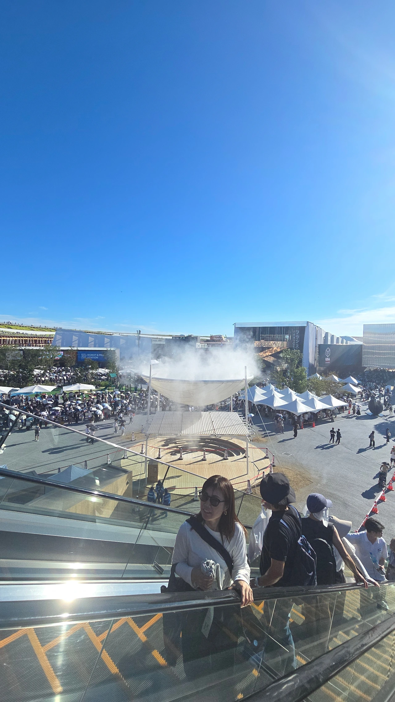 타워 1층 리셉션에 짐을 맡기고 2층 Saras라는 곳에서 스파게티와 햄버거스테이크 런치세트로 기운을 찾아 겁도 없이 다시 지하철역으로 ㅎㅎ chuo의 마지막역인 유메시아역이 엑스포 입구다 East gate 12 시 예약 1시쯤 뙤약볕이 절정에 달 했을 때 그래로 유튜브에서 본 것보다는 훨씬 빠른 10분 이내에 입장 info와 cafe를 거쳐 grand ring에 진입 환경 관련 파빌리온 하나와 호주관을 보니 오후 5시 스카이 워크를 밟으며 출구로 이동 다시 지하철 타고 무사히 도착