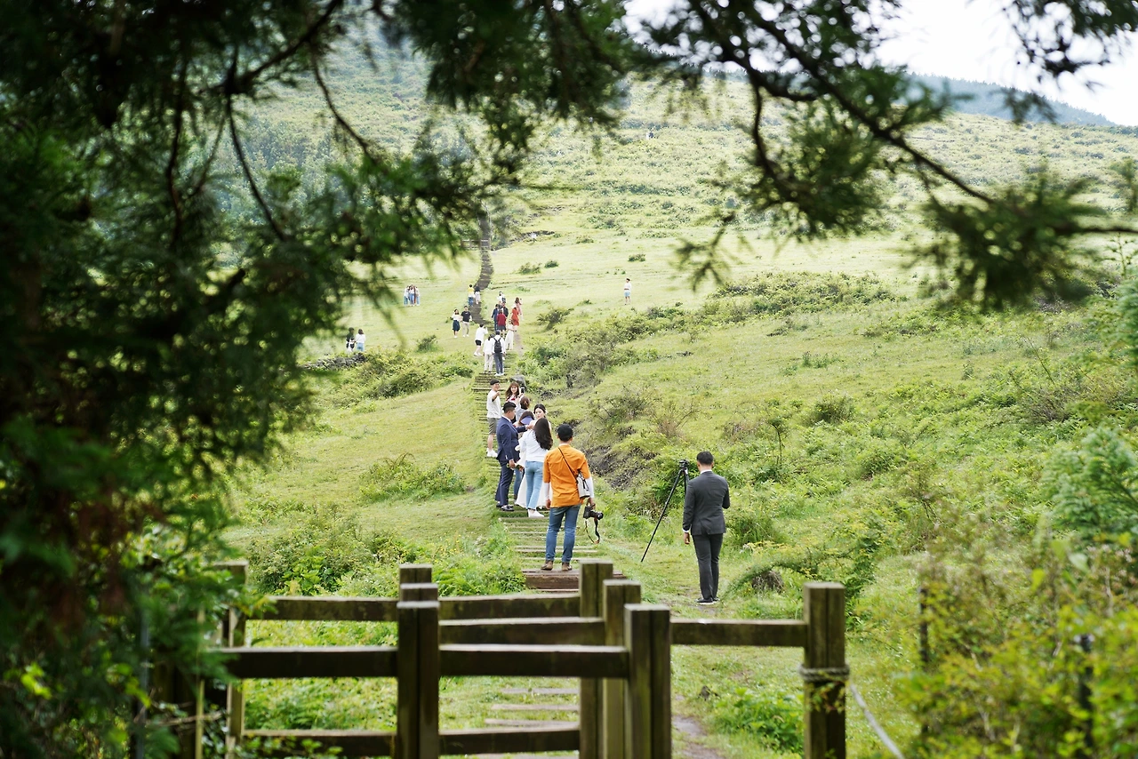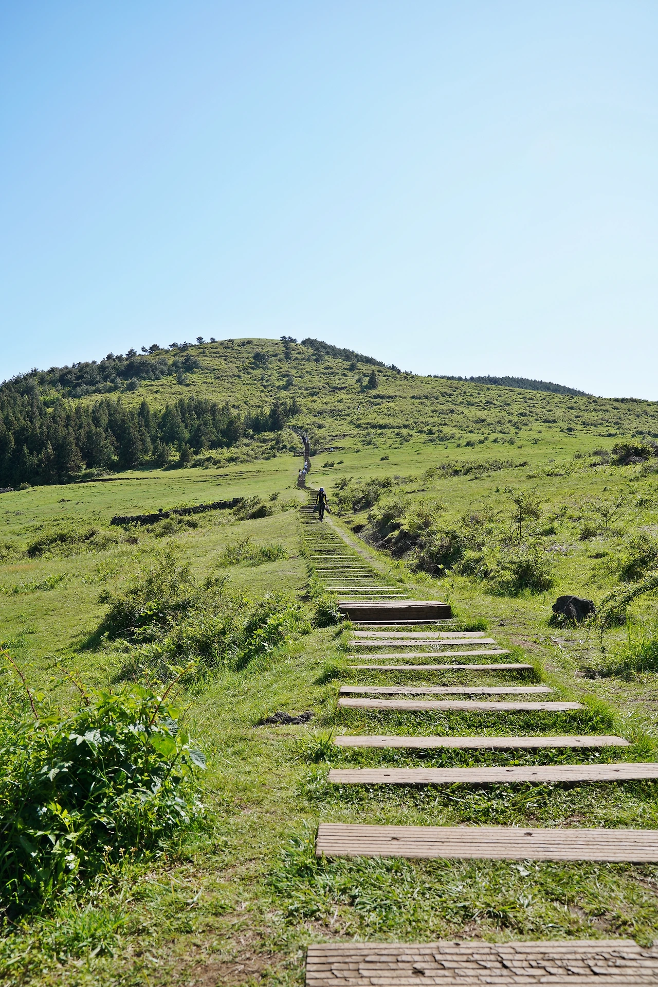 하늘로 길게 뻗은 계단을 오르다 보면 하늘에 온 것만 같은 착각을 일으키게 한다. 일출시간대에 가면 주변 오름 사이로 낮게 스며드는 해무가 정말 예쁘다.