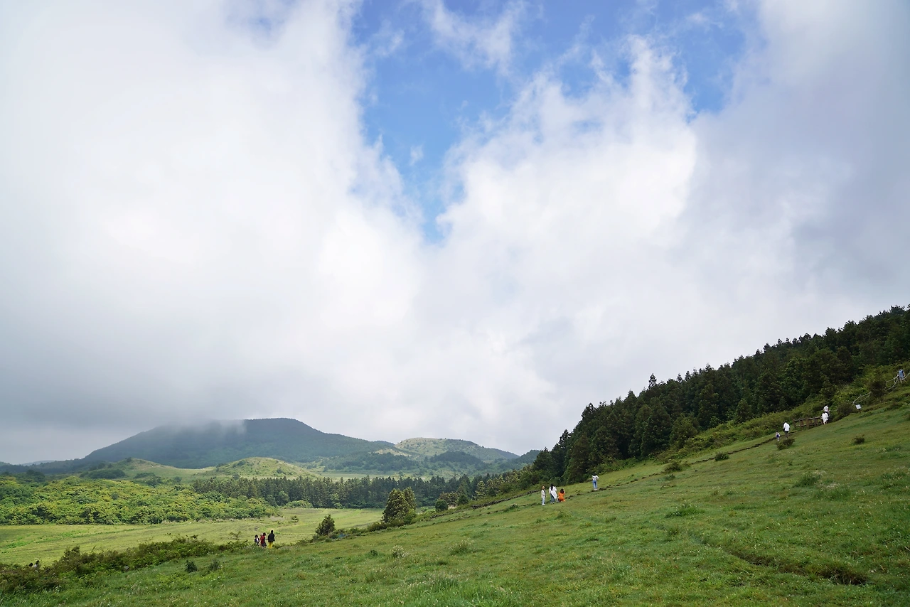 산정부의 북측과 동쪽에 자그마한 봉우리가 솟아 있고, 가운데 움푹 파인 커다란 원형 분화구를 갖고 있는 제법 큰 화산체이며 총면적은 약 581,463㎡이며, 둘레 3,124m 높이 356.9m이다. 동북쪽 비탈은 주로 초지이지만 나머지 비탈 대부분은 삼나무와 소나무가 자라고 있다.