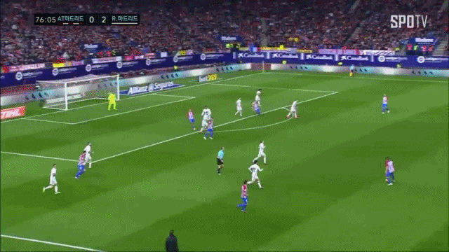 다만 이는 이스코와 모드리치를 과소평가해 나온 실책이었다고 봅니다. 두 선수는 아틀레티코의 진영을 뚫고 베일과 호날두에게 공을 안정적으로 전달해냈습니다. 그리고 베일과 호날두는 상대방의 사이드를 유린했습니다. 아틀레티코 답지 않게 호날두의 침투를 계속 허용하는 모습을 보이고, 베일에게 사이드를 계속 내주는 모습들을 보여왔는데, 기본적으로 아군 진영에서의 수적 우위를 만들지 못했기 때문으로 보입니다. 특히 호날두의 마지막 골에서 이런 문제점이 극명히 드러납니다.