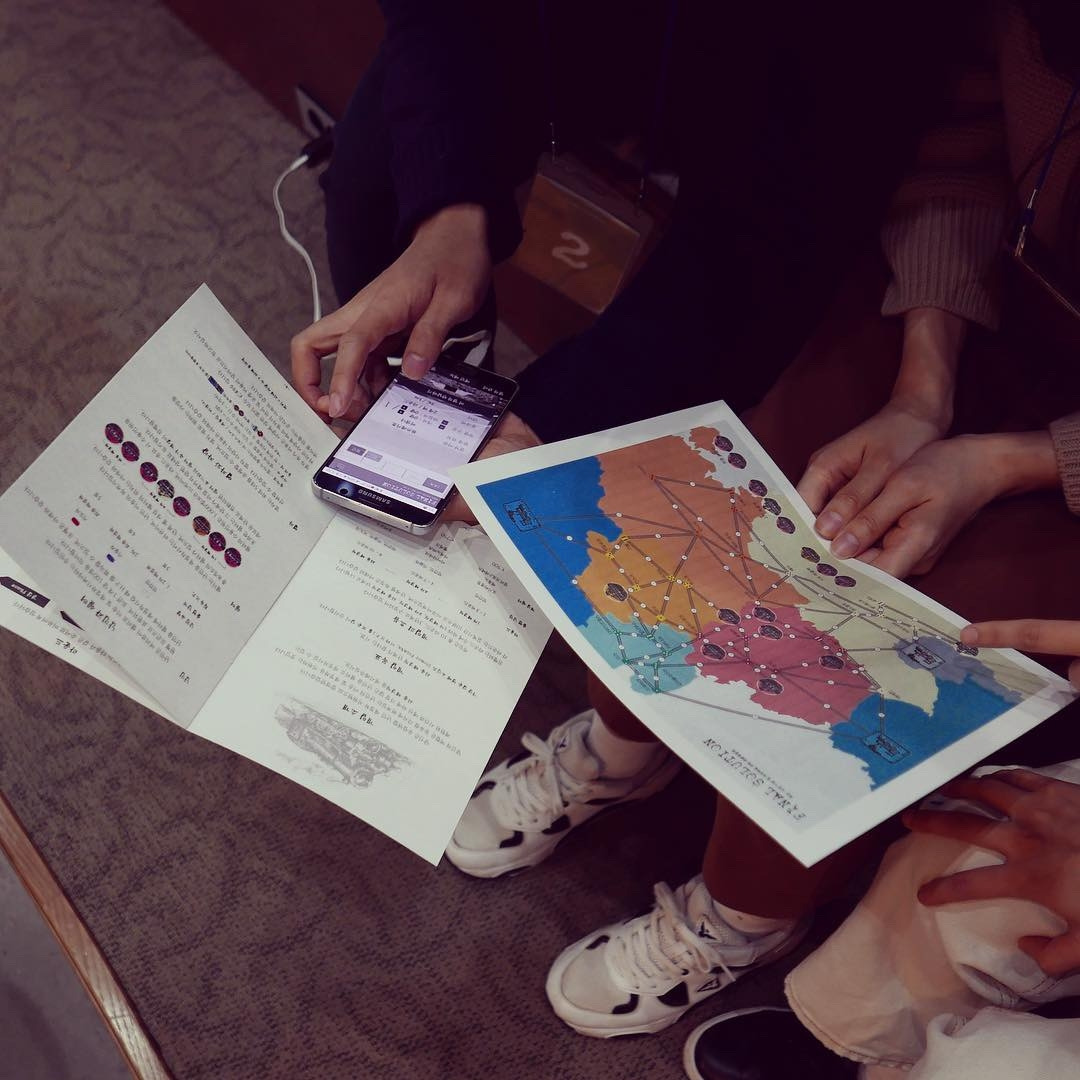 이 게임은 디지털 디바이스의 편리성과 직관성, 그리고 아날로그의 감성을 모두 잡기 위해 Web App과 피지컬 컴포넌트를 결합했습니다. 플레이어는 앱을 통해 각 의사결정에 필요한 소요 자원을 빠르게 산정하여 최적의 의사결정을 내리는 것을 지원받고, 의사결정의 결과가 보드판 위에 반영됩니다.