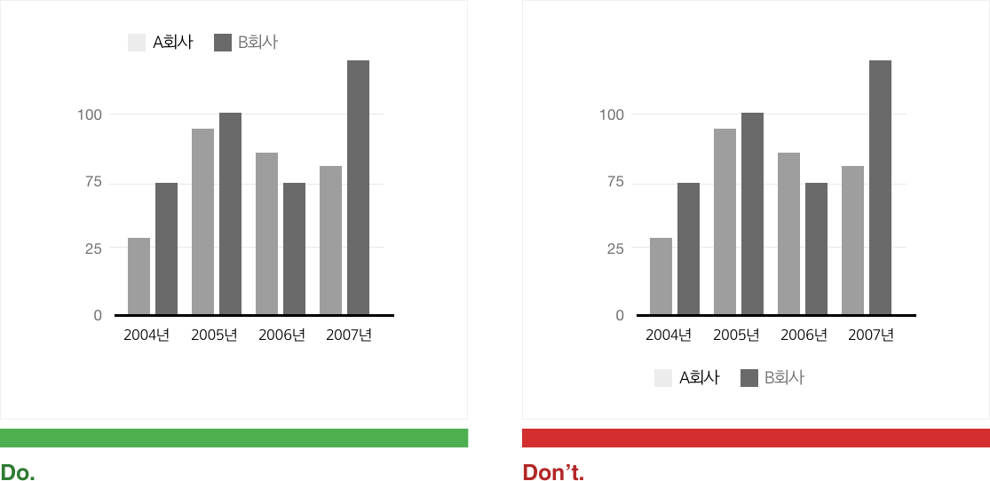 (참고로 MS Office의 막대차트 범례 위치 기본 설정은 그래프의 아래다)