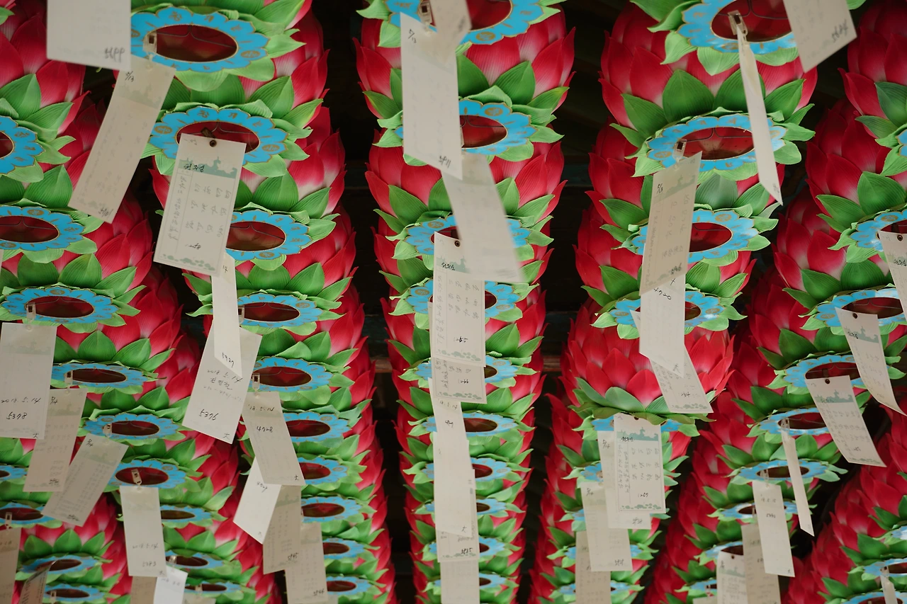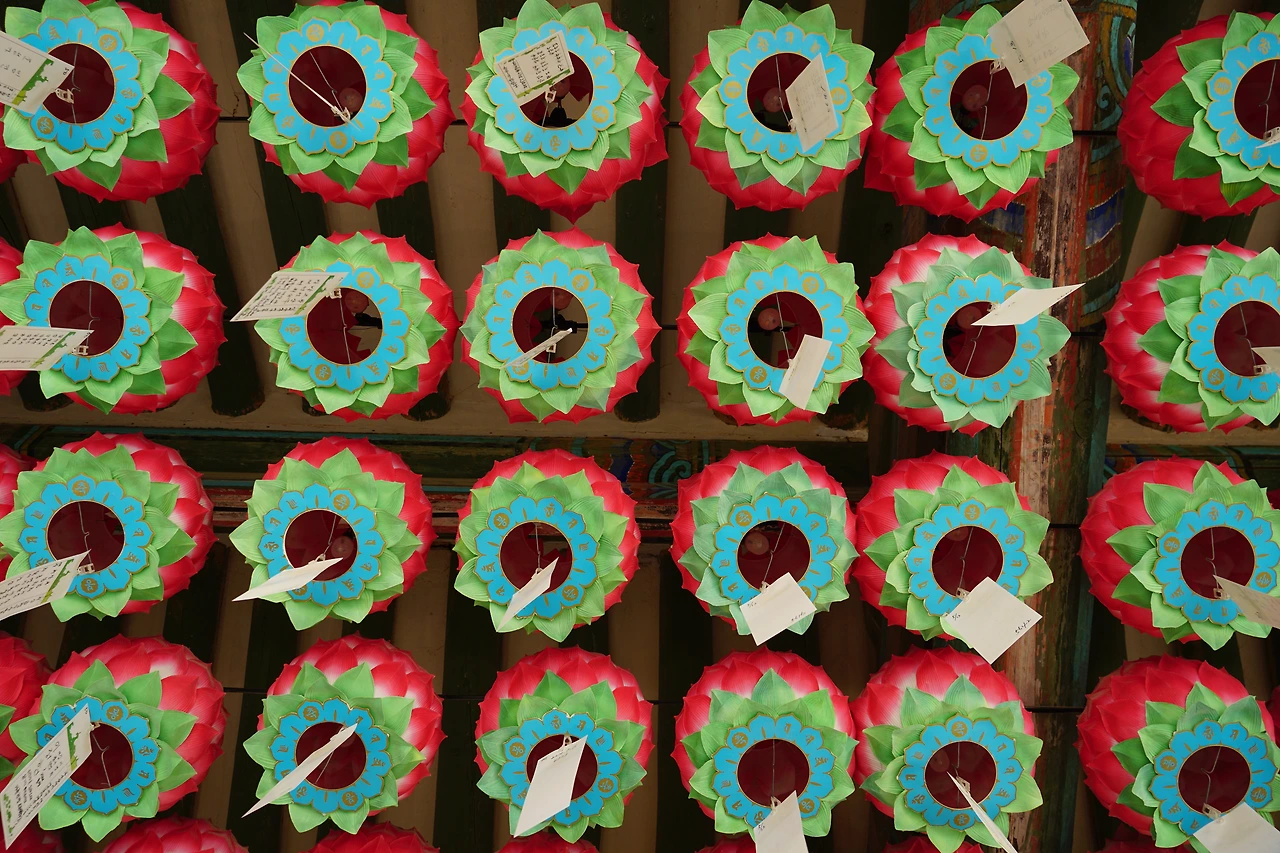 내려오는 길에 색색의 연등에 잠시 눈길을 뺏긴다.