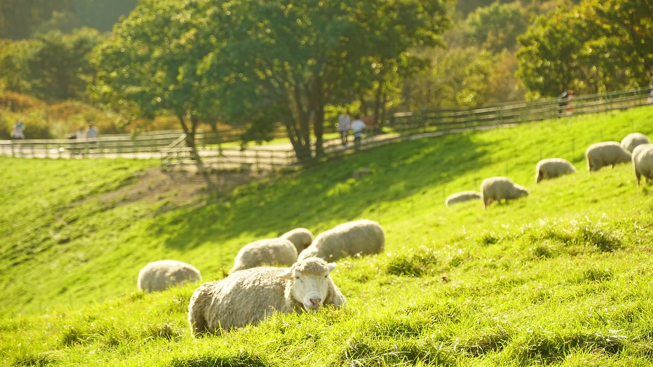 열 마리(?)의 양빵들을 순식간에 해치우고 들어서니 여기가 한국이 맞나 싶은 장면이 펼쳐진다. 드넓은 잔디밭에 새하얀 아기양들이 일광욕을 하고 있는 모습이라니.