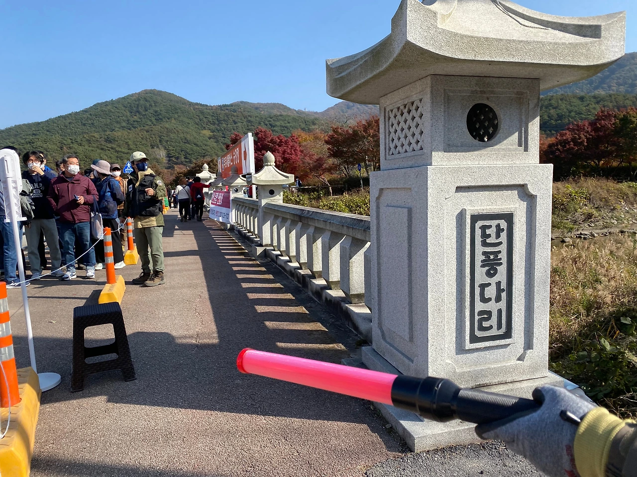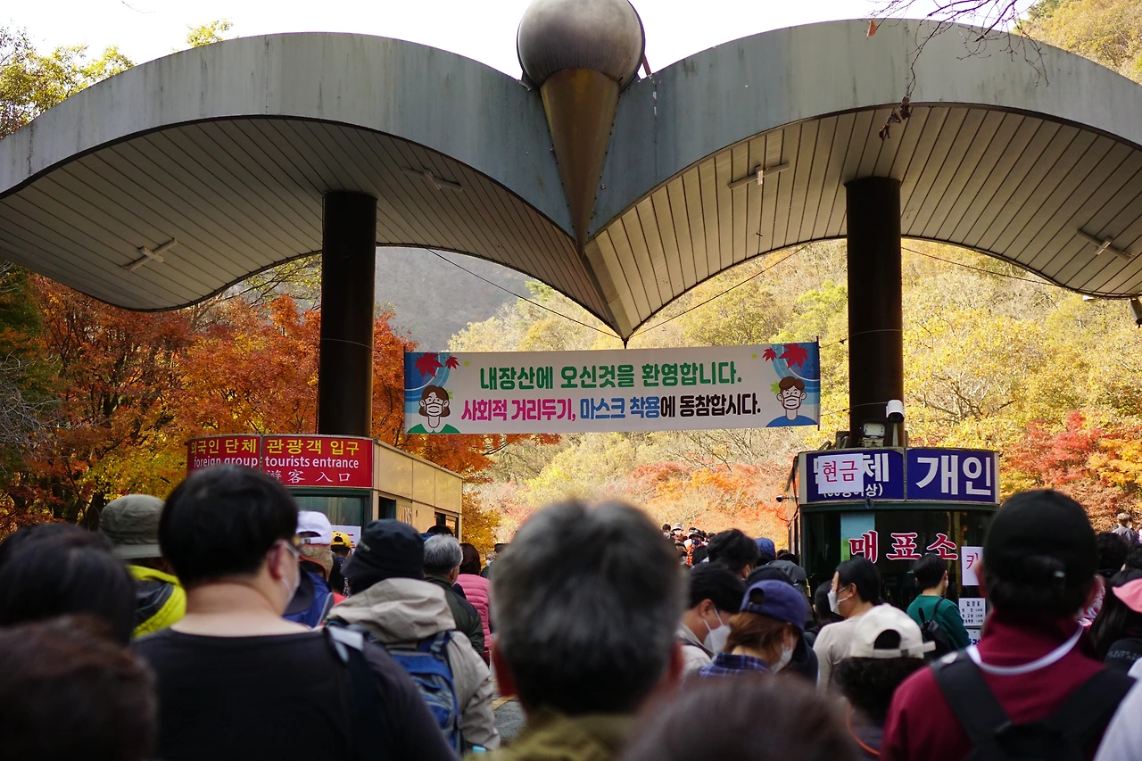 토요일 오전이 되었고, 내장산을 방문한다. 하필 단풍놀이 시즌이고 토요일이라 초입이라고 할 수도 없는, 내장산 입구와 상당히 멀리 떨어진 지점에서부터 지옥의 차량정체가 시작되었다. '정체'라고 표현할 수 있는지도 모르겠는 수준, 도로에 그냥 차가 '정지'한 수준이었다. 결국 내장산 문화광장에 주차해두고 걸어갈 각오를 했다.