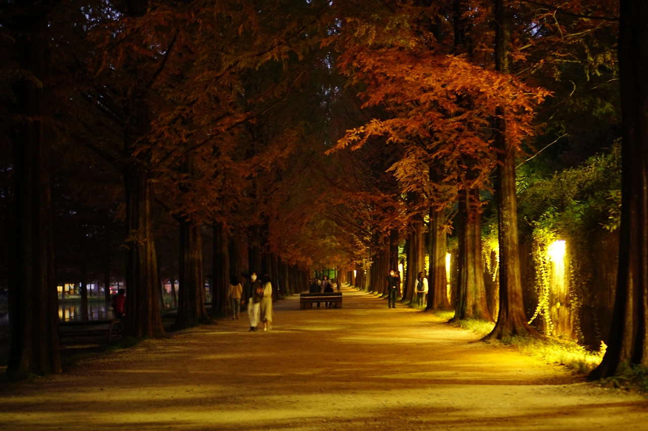 해가 뉘엿뉘엿 질 무렵에 메타세콰이어길에 간다. 좀 늦은 감이 있지만 저녁엔 광주에 사는 친구를 만나기로 했기 때문에 입구라도 보고오자 하는 아쉬운 마음에서였다. 낮에 왔으면 참 좋았을 것을!