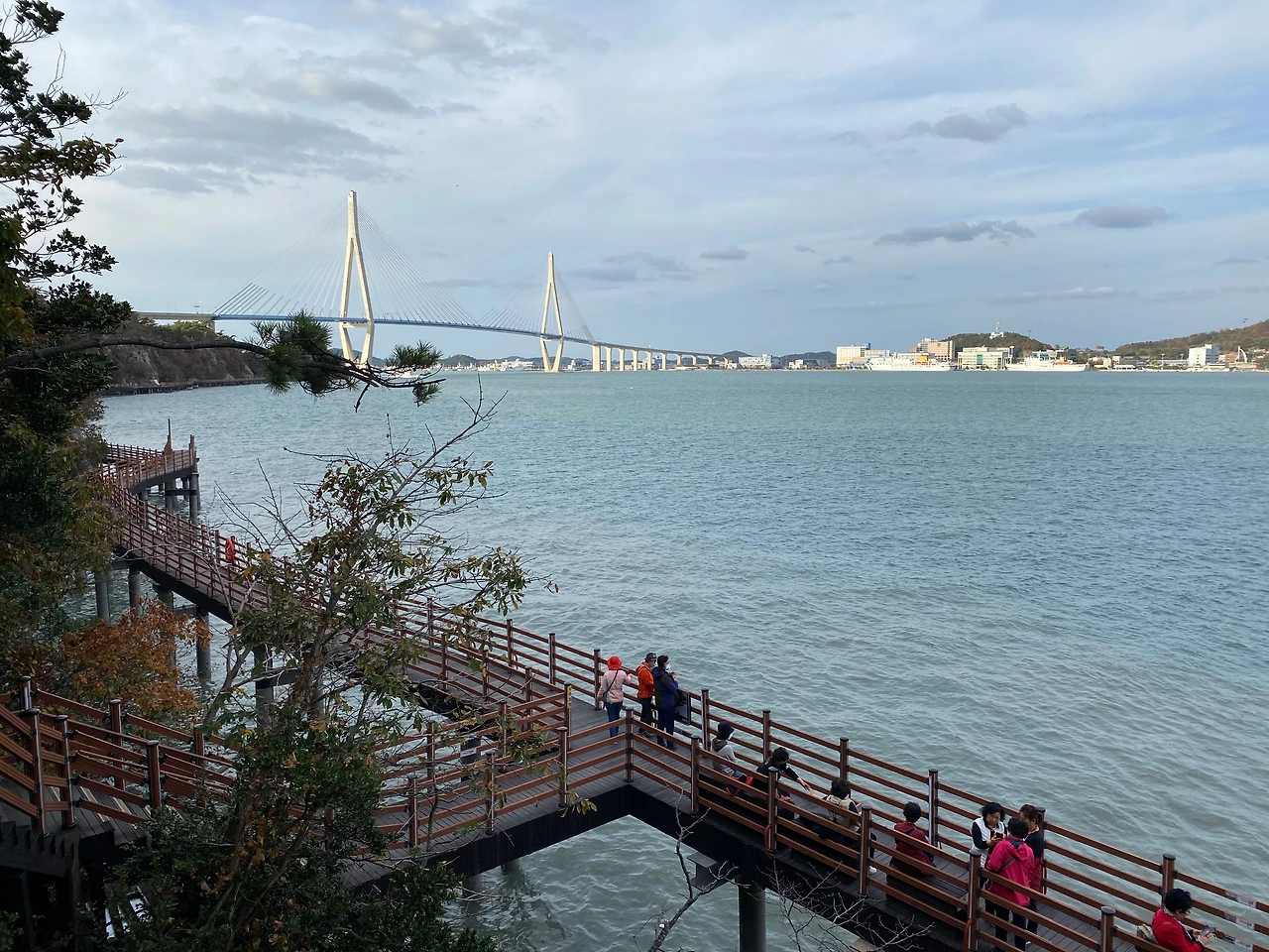 그리고 고하도에 내리면 약간의 경사가 있는 산길을 트래킹을 하게 된다. 거기서 다시 내려가면 바다 바로 위의 산책로를 걸을 수 있다. 바다 위의 나무데크와 멀리서 보이는 목포대교, 그리고 케이블카들. 하늘은 흐렸지만 그 모든 것들의 조합이 참 아름다웠다. 그러다 문득 세월호가 떠올랐고 마음 한 구석이 아린건지 아픈건지 속상한건지, 아무튼 썩 좋지않았다.