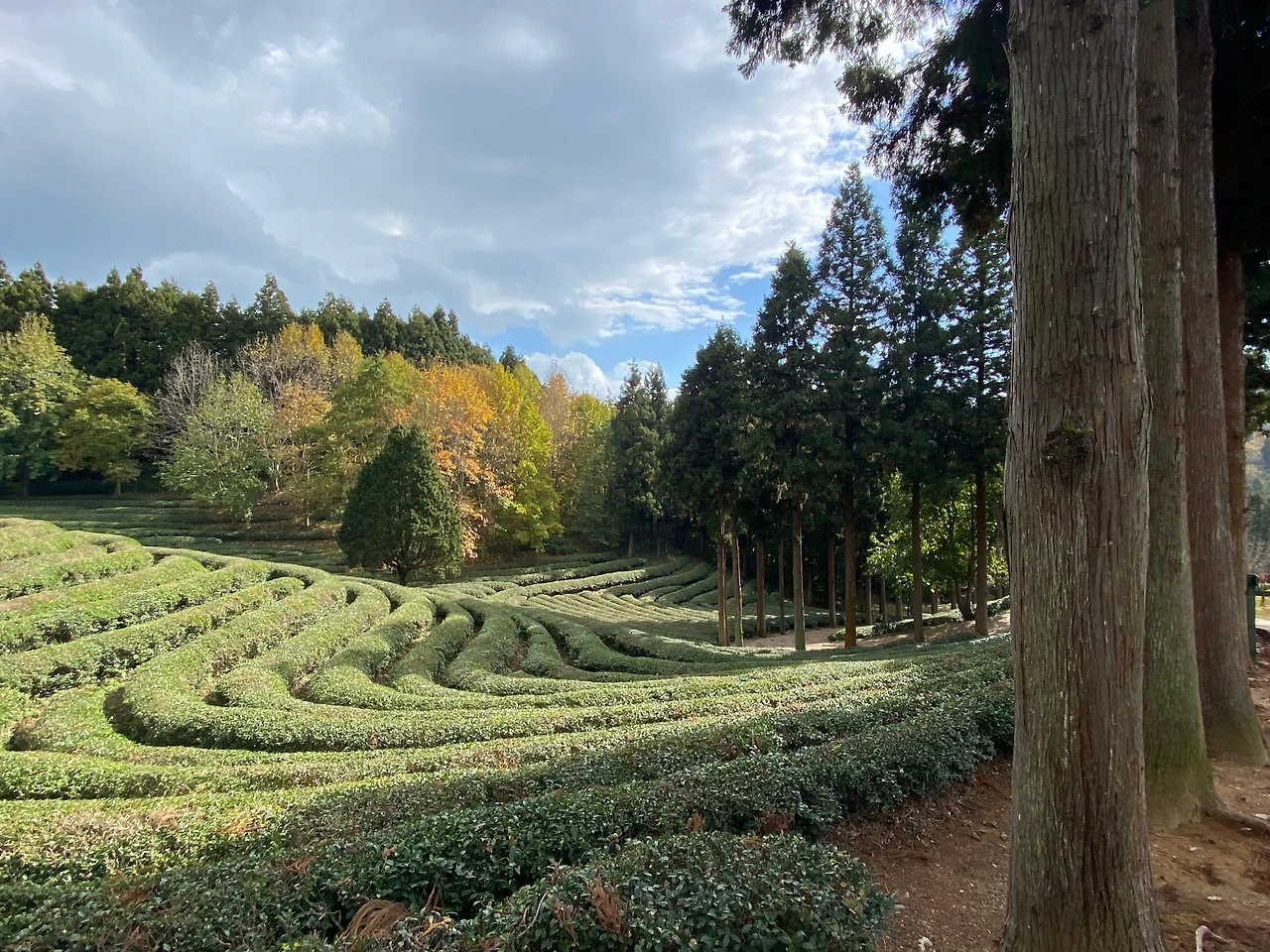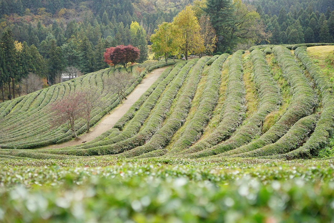 메타세콰이어길 같은 입구를 지나면 본격적인 녹차밭이 나온다. 감탄이 끊이질 않았다. 그냥 경사진 밭에 녹찻잎들이 잘 정렬되어서 자라는 것 뿐인데 왜 아름답지? 아무리 생각해도 '왜' 아름다운지 모르겠다만 아무튼 계속 바라보고 있고 싶은 그런 풍경이었다.