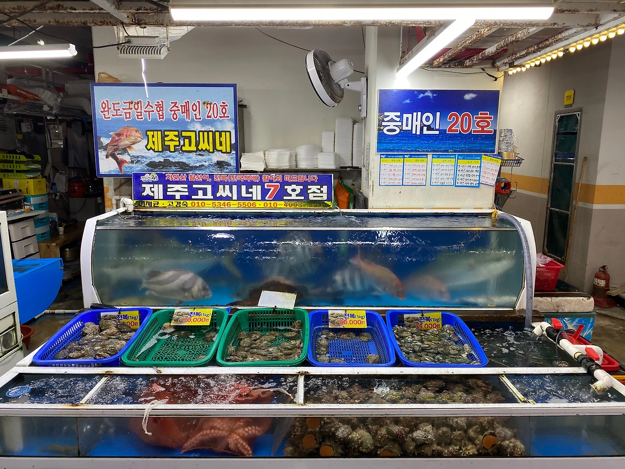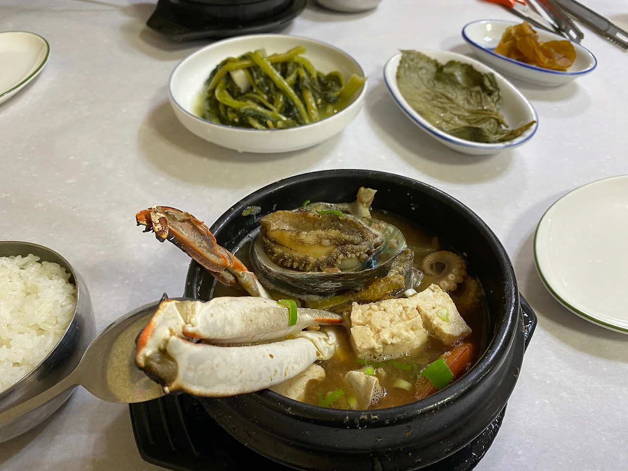 전복을 구매하러 수산시장에 들렀다. 그 근처에서 아침으로 해물된장을 한끼 했고, 양쪽 집에 전복을 한 박스씩 보냈다. 자연산 전복은 생각보다 훨씬 비싸서 고민끝에 양식으로 보냈다.