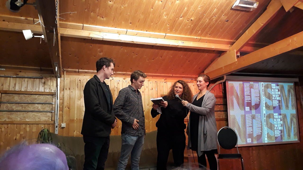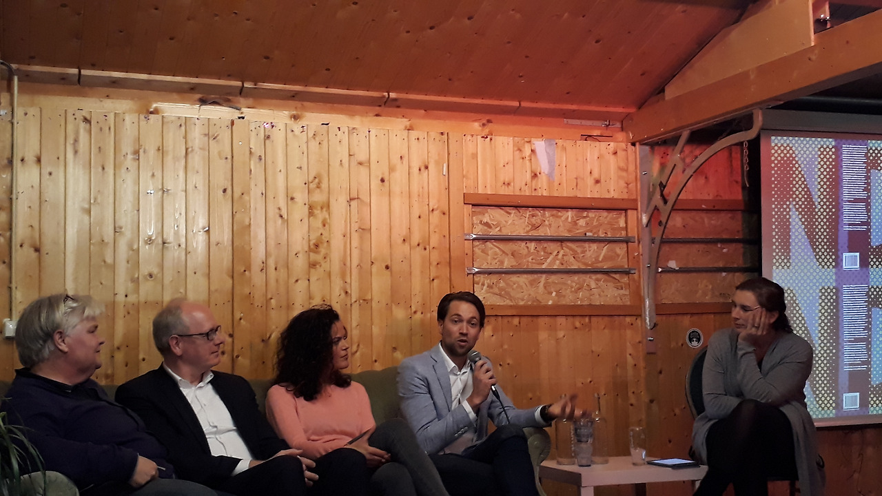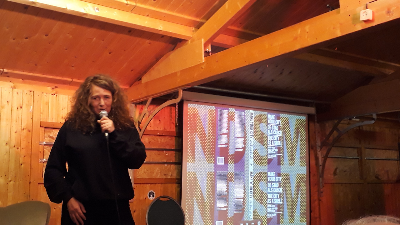 17.00부터는 NDSM 선착장 바로 옆에 위치한 Sexyland라는 임시 예술공간에서 저자 Eva de Klerk의 책 이야기가 시작되었다. 사회는 Eva의 오랜 친구, Natasja van den Berg가 맡았다. Natasja는 시민참여에 관한 책 '실용적인 이상주의(Praktisch Idealisme)'의 저자이자, 시민참여의 장을 기획하고 공유도시 담론을 퍼뜨리는 팍하위스 더 즈베이허(Pakhuis de Zwijger)의 각종 강연, 토론회의 사회자로 활약해 왔다.