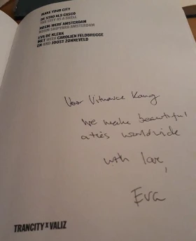 Eva가 책에 써 준 문구는 '전 세계에 아름다운 도시를 함께 만들어가자' 였다.
