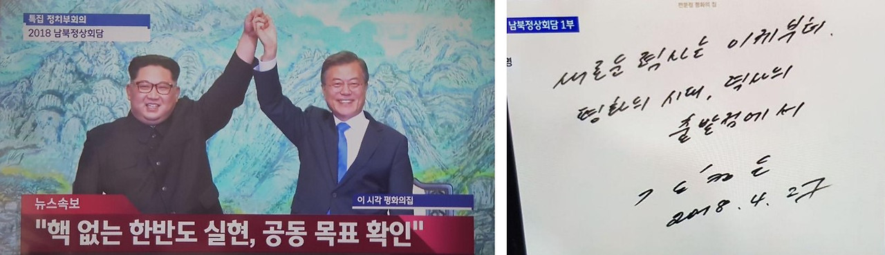 직관적으로, 평화 체제로의 이행은 지금까지 레드 콤플렉스를 동원해 종북, 공산주의자 딱지를 붙여가며 대한민국 시민권자의 안녕과 복지, 생명을 우습게 보고 억압했던 이들의 허구와 기만을 밝히게 될 것임을 기대하기 때문이다. 북한과의 대치 상황을 구실로 삼아 하루하루 평범하게 일해 먹고사는 이들의 처우 개선은 끊임없이 뒤로 미루고 권력을 유지하는 데만 몰두했던 정치 세력, 국민 안전은 정작 담보하지 못하면서 정권 넘기면 안보가 위험하다고 협박했던 정치 세력, 그렇게 안보를 팔아 거짓 안전을 약속했던 정치 세력이 역사의 뒤안길로 사라질 날이 좀 더 빨리 올 것을 고대하니, 지난 시간 묵혀둔 체증이 그냥 내려가는 것 같았다.