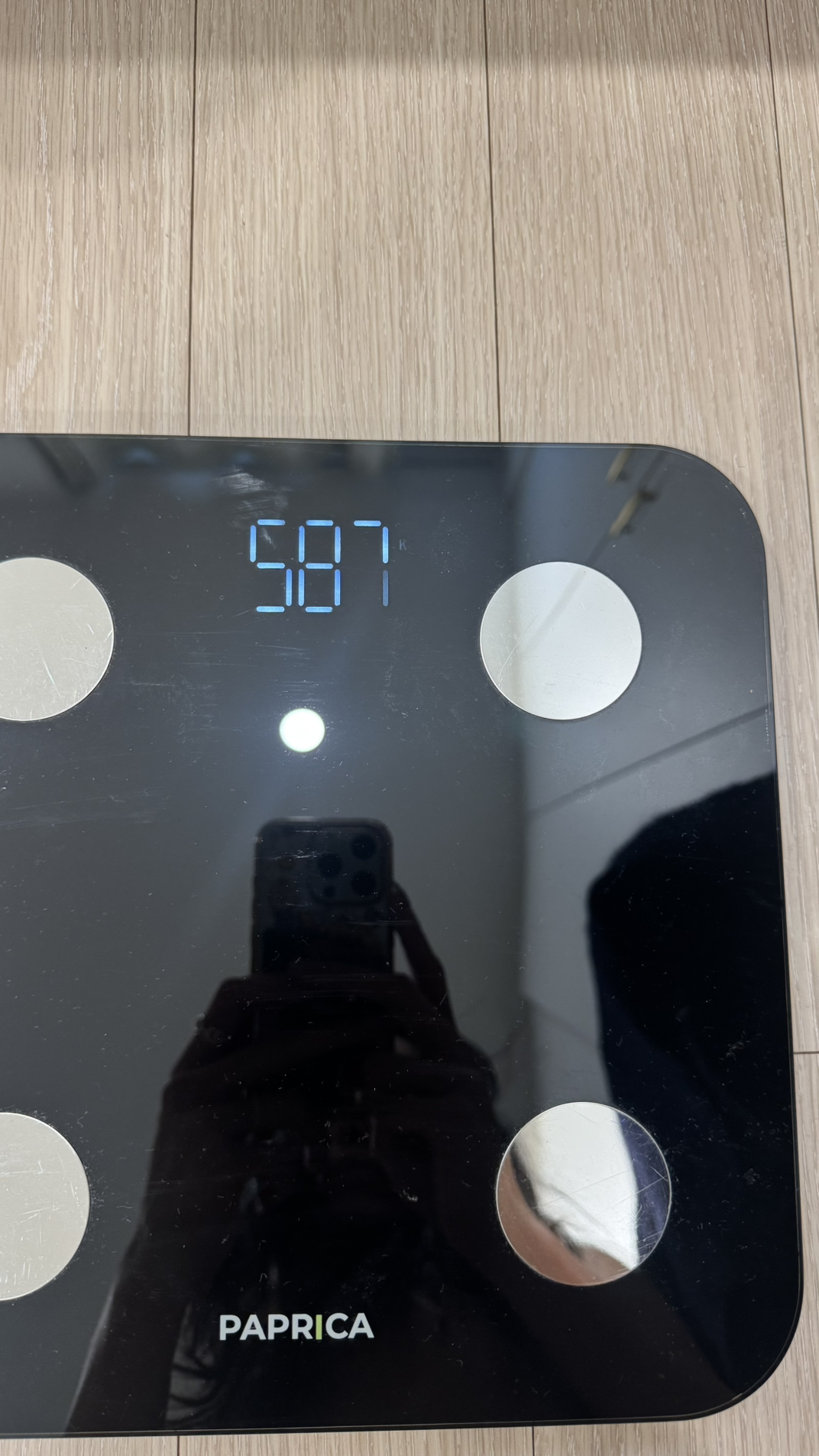 2주 차가 되자 체중계 숫자는 61.8kg에서 58.6 kg으로 -3kg가리켰다.