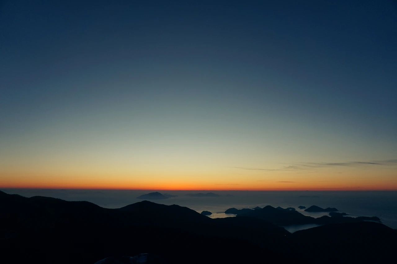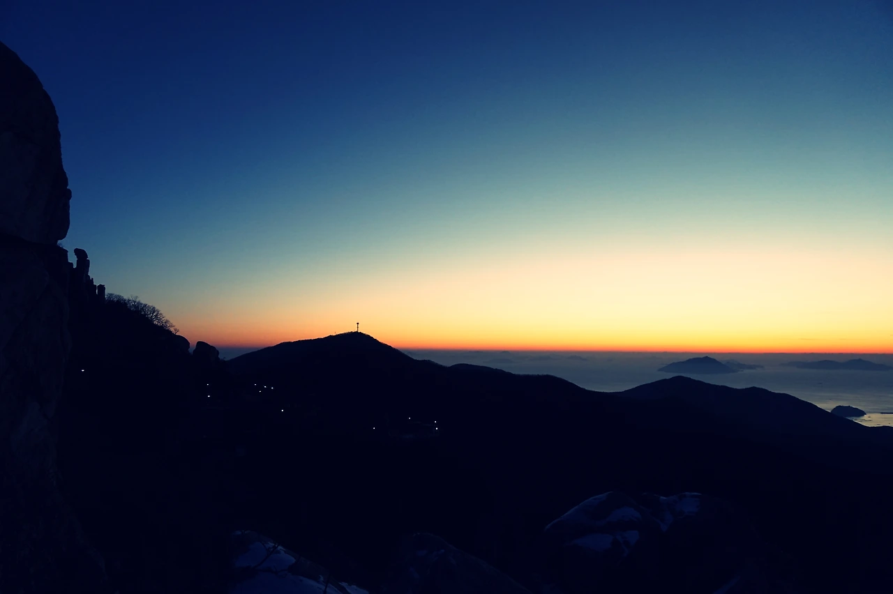 아침 일곱 시에 일어나 산장 근처의 제석봉으로 향했다. 일출 예정시간은 7시 35분. 이미 수평선 근처는 발갛게 달아올라 있었다. 사람보다 일찍 잠에서 깬 까마귀들이 산봉우리마다 가득했다. 바람이 매서웠지만 바위에 몸을 기대고 일출을 기다렸다. 올해 처음 보는 일출이었다. 하늘은 구름 한 점 찾아볼 수 없을 만큼 맑았고 산정은 고요했다. 눈 때문에 오르는 길이 쉽지 않았지만 그 덕분에 이런 정적을, 고요 속의 일출을 볼 수 있게 됐다는 생각에 마음이 가벼워졌다. 바다에는 아직 긴 잠에서 깨어나지 않은 듯 거뭇한 기운이 어려 있었고 하늘에는 수평선 근처를 중심으로 붉은 기운이 서려 있었다. 일출 예정시간이 다가오자 수평선 한쪽이 유독 밝게 빛나더니 소복하게 솟아오르기 시작했다. 가만히 기다리자 봉긋하게 솟아난 붉은 기운은 점점 완연한 원형을 갖추기 시작했고 붉은 기운도 더욱 강렬하게 타올랐다. 몸을 기대고 있는 제석봉 한편에 햇볕이 바짝 들었고 까마귀 한 마리가 그 사이를 날아올랐다. 해가 수평선 위로 완전히 떠오르데 오랜 시간이 걸리지 않았다. 아쉬운 마음에 일출의 장관이 펼쳐진 곳을 향해 카메라 셔터를 눌렀다.