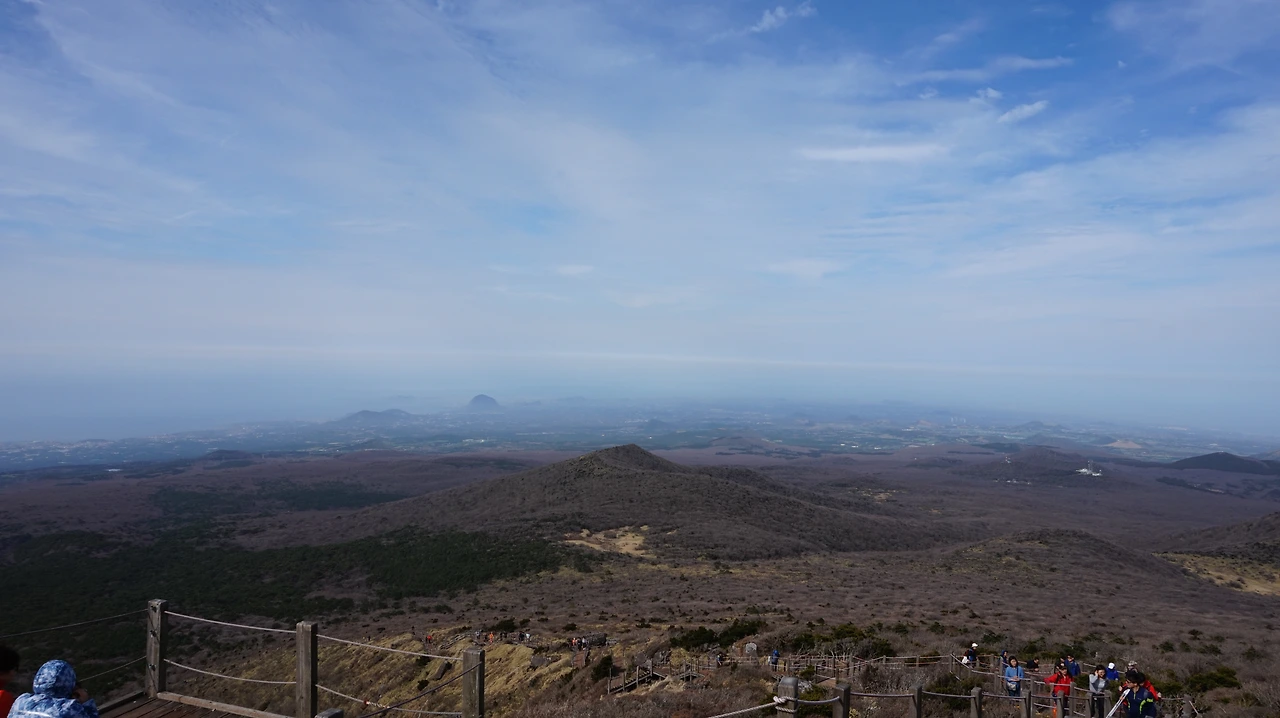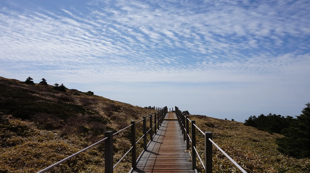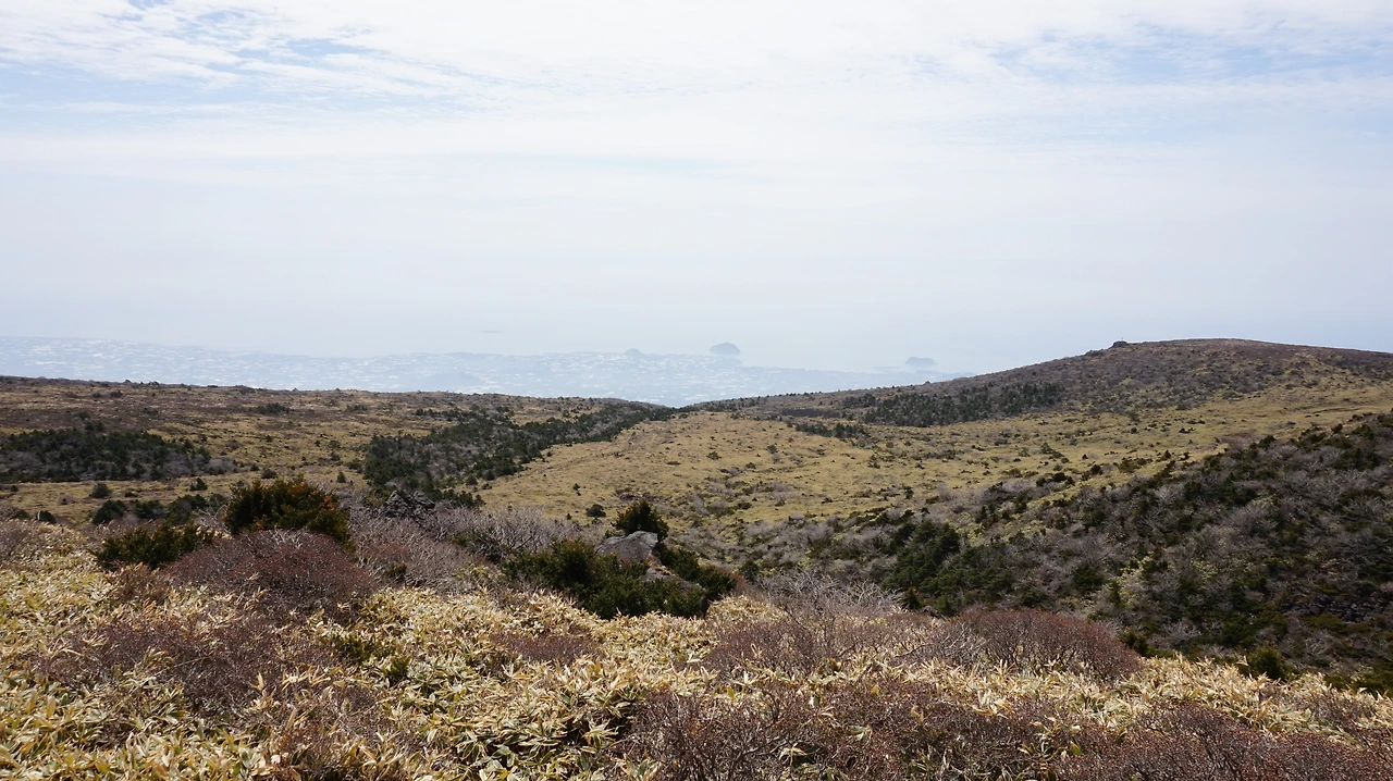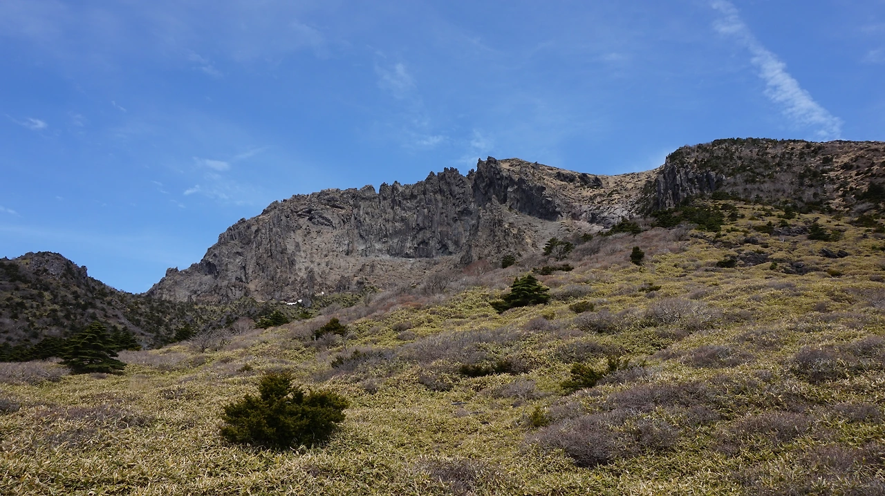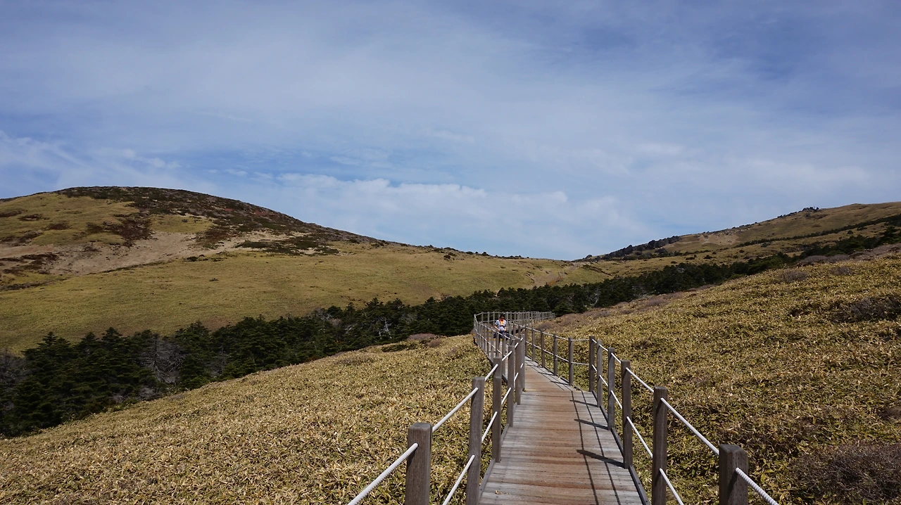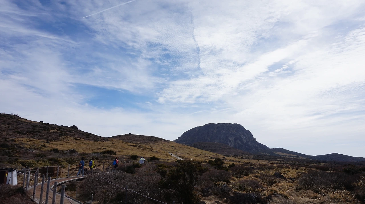 선작지왓은 영실코스에 있는 평원 지대다. 스위스나 이탈리아의 고원 지대를 떠올리게 만드는 선상 평원 지대다. 다른 것이 있다면 선작지왓에서는 바다가 보인다는 것이다. 해발 1700m 산 위에 자리 잡은 거대한 평원에서 보이는 바다. 이 거짓말 같은 풍경이 한라산 영실코스를 오르면 나타난다. 5월에는 이 곳에 진달래, 철쭉 같은 봄꽃들이 만개해 장관을 이룬다고 하는데, 아쉽게도 4월에는 꽃을 볼 수 없었다. 망망대해를 바라보며 산을 걷는 것만으로도 충분히 만족스러웠기에 가벼운 마음으로 등산로를 걸었다.