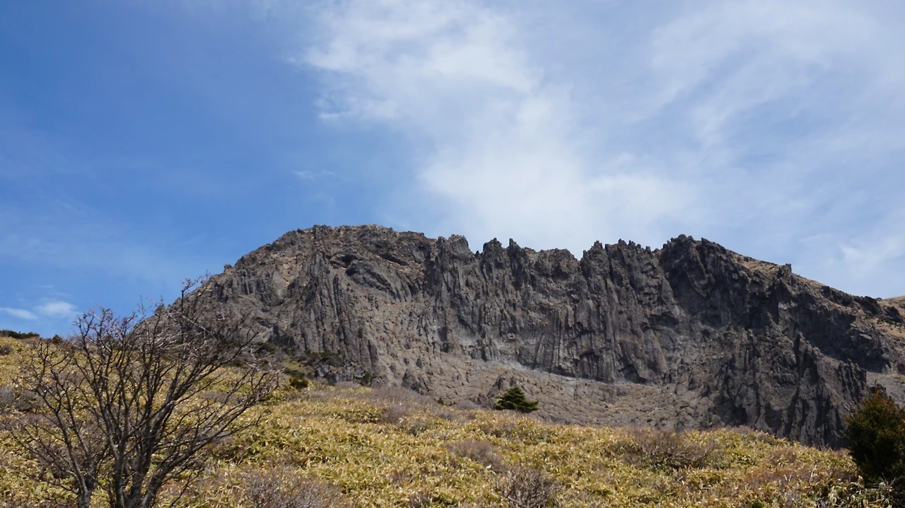남벽분기점까지는 고산 평원 지대를 따라 평탄한 길이 계속 이어졌다. 백록담의 남쪽 벽을 바라보면서 동쪽으로는 도는 식이었다. 이런 고산 평원 위에 또다시 깎아내리는 듯한 절벽이 자리 잡고 있다는 것이 신기할 따름이었다. 한라산 남벽은 국내 최대 규모의 암벽이다. 절벽 높이만 300m에 이른다. 웬만한 동네 뒷산은 백록담 안에 들어갈 정도다. 남벽을 보면서 걷고 있으면 바람이 계속해서 땀을 식혀 주는데, 바다에서 불어오는지, 산에서 불어오는지 분간할 수 없었다.