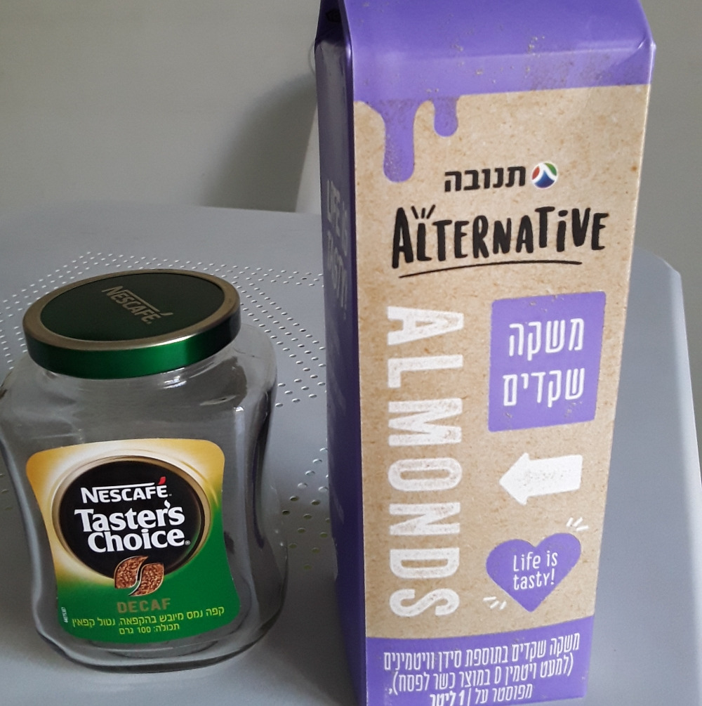 글을 쓸 때면 언제나 함께하는 아몬드 우유 넣은 디카페인 커피까지.