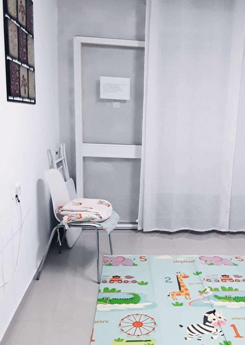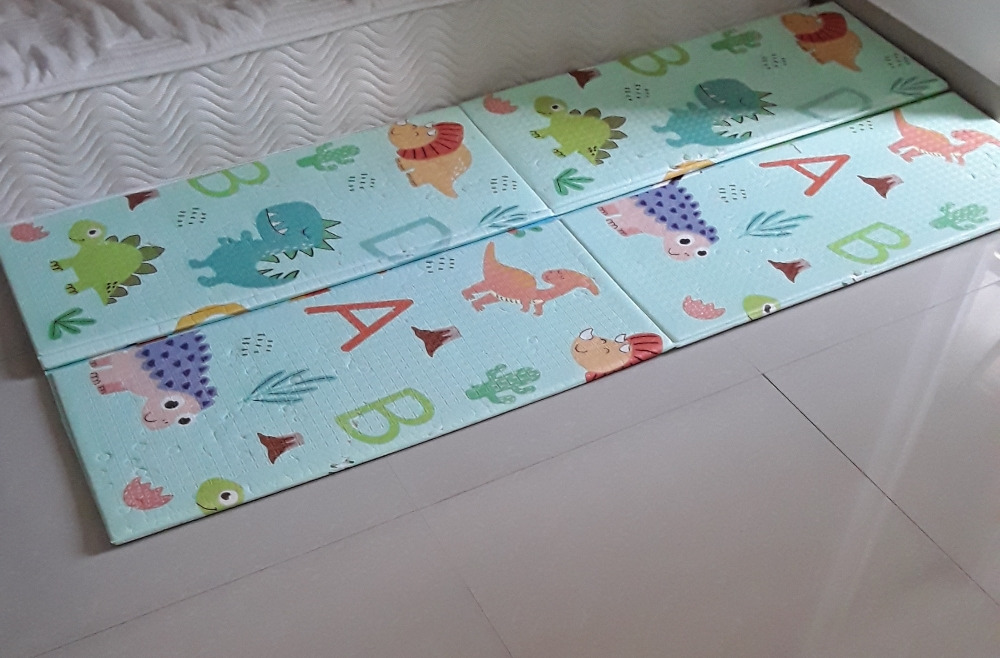 이불을 착착 개어 넣고 간단하게 바닥을 쓸고 난 후 아이들이 놀 수 있도록 매트까지 깔고 나면