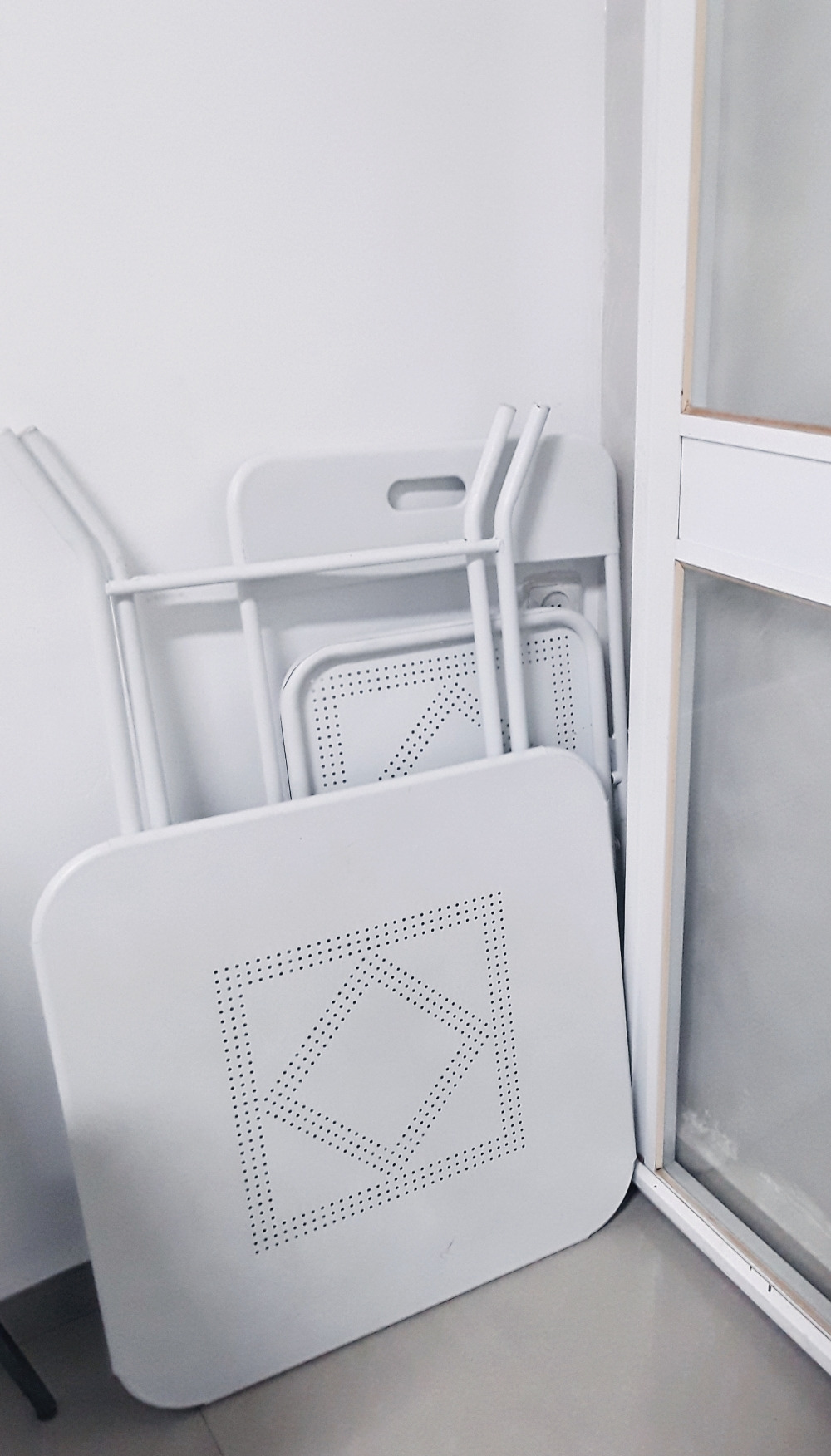 우리 집 식탁은 접이식이다. 식사할 때나 필요할 때만 펼쳐서 쓰고 사용을 다하고 나면 접어서 벽에 세워둔다. 좁은 거실이 한결 넓어지고 청소하기에도 편하다. 아이들이 운동장에서 뛰듯 놀 수 있어 좋다.