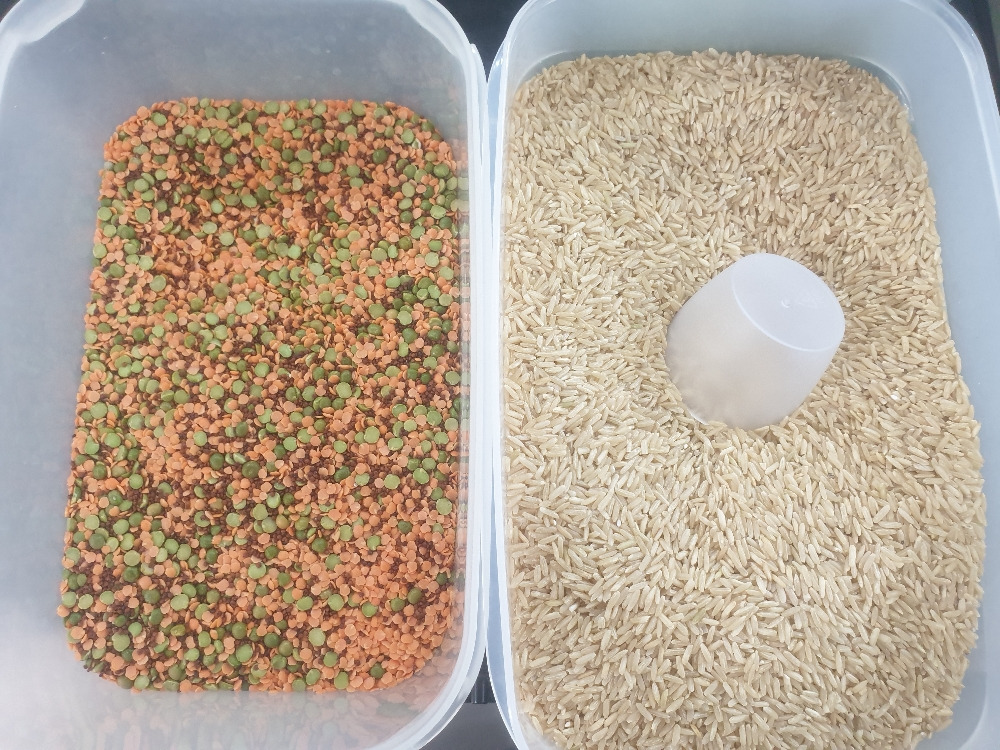 쌀에 물 받아놓고 불리며 걷고