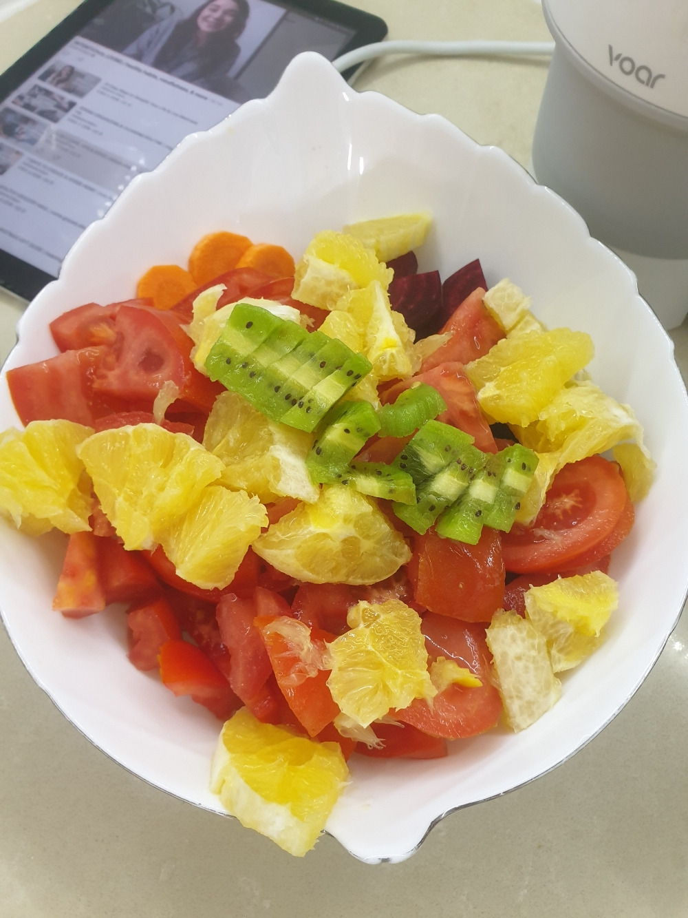냉장고에 애매하게 남아도는 과일과 채소를 모아 하루에 한 번은 생식으로 샐러드를 먹으려고 한다.