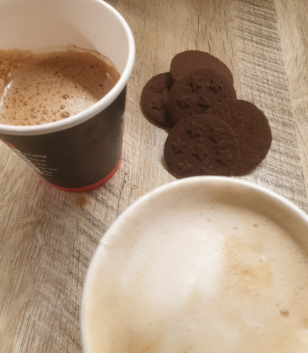 물론 카푸치노 두 모금 이후 둘째는 마시던 핫코코를 다 쏟았고 화장실 가서 씻기고 부랴부랴 커피숍을 나서야 했다는 것이 이 짧은 휴식의 결말이지만