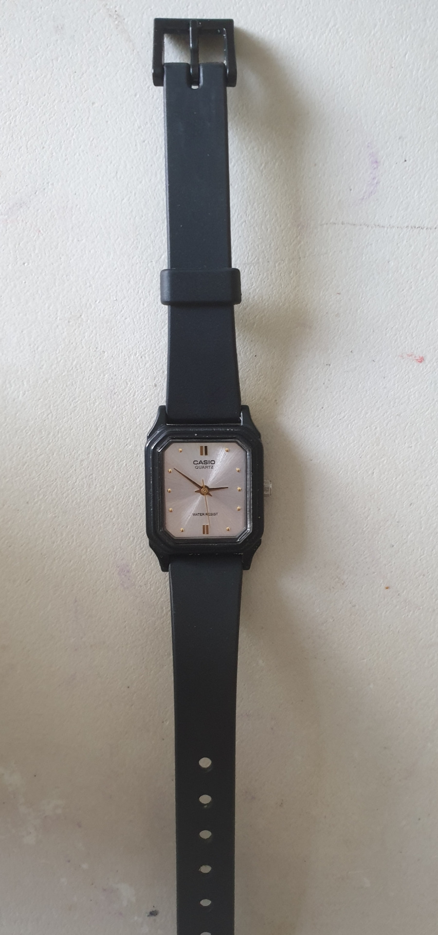 그리하여 우레탄 재질의 미니 사각 손목시계를 적절한 가격에 구매했다. 금빛 시계침도 알맞다.