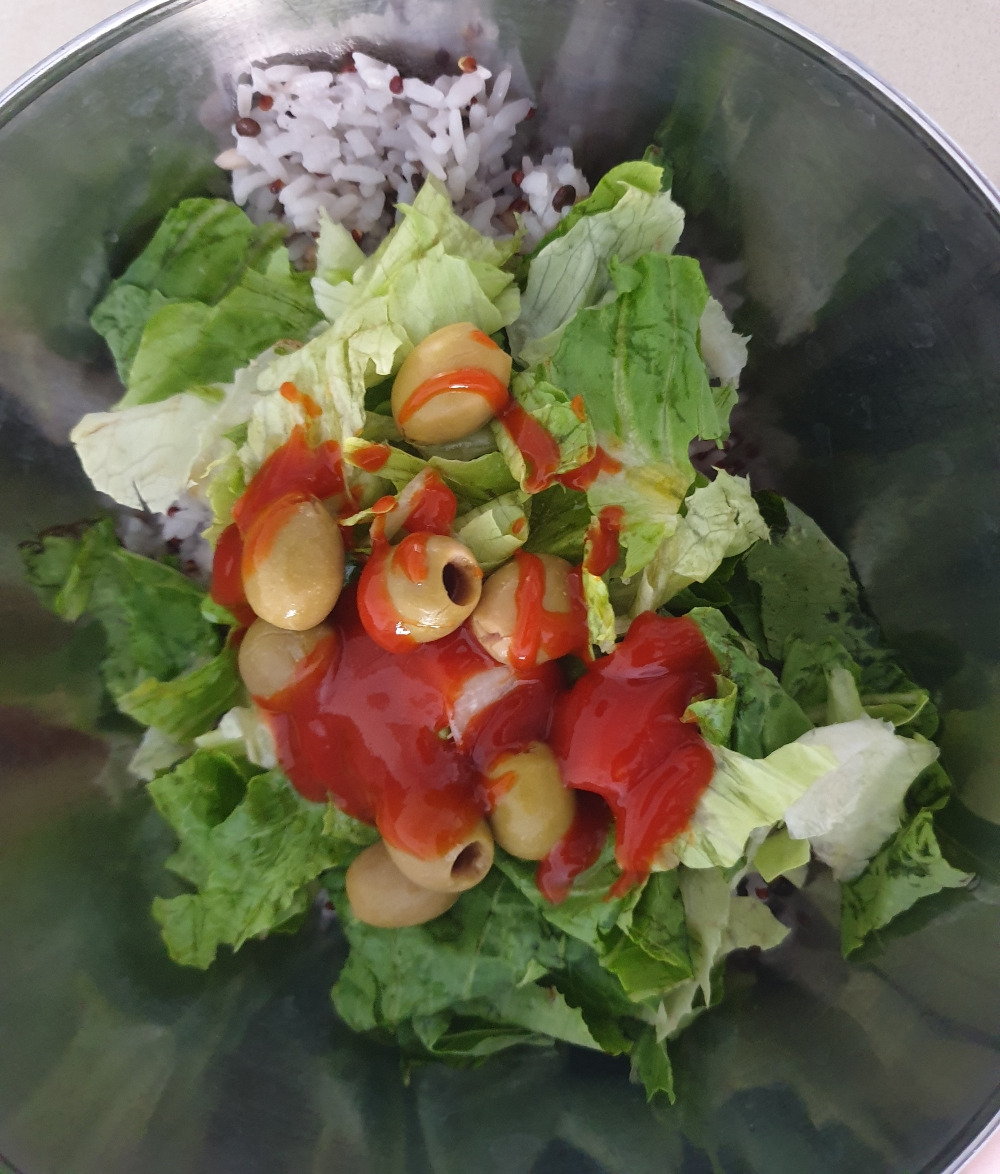 나는 올리브유를 너무나 좋아해서 참기름 대신 올리브유를 가볍게 둘러준다. 올리브알도 5~6알 올린다.