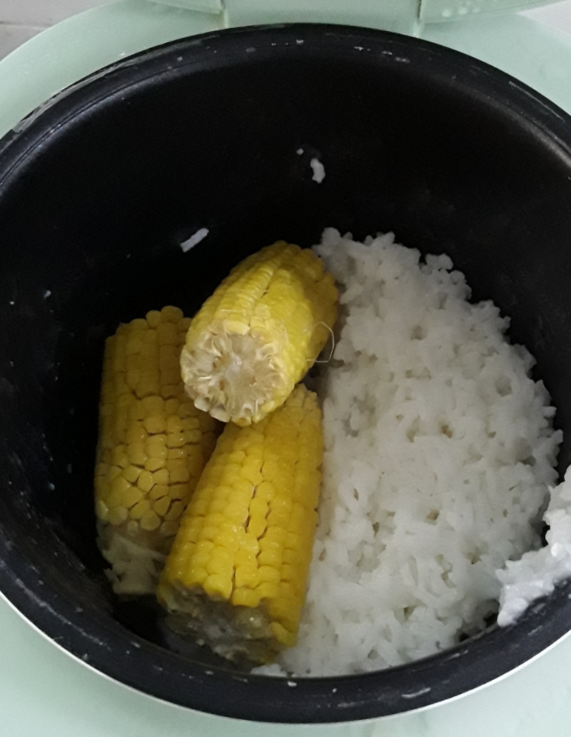 어제 소금 뿌려 짭쪼름하게 삶은 옥수수를 아침에 다시 데울때 갓 지어서 모락모락 김이 올라오는 뜨뜻한 밥 옆에 끼워 넣었더니 금방 따뜻하게 데워졌다.