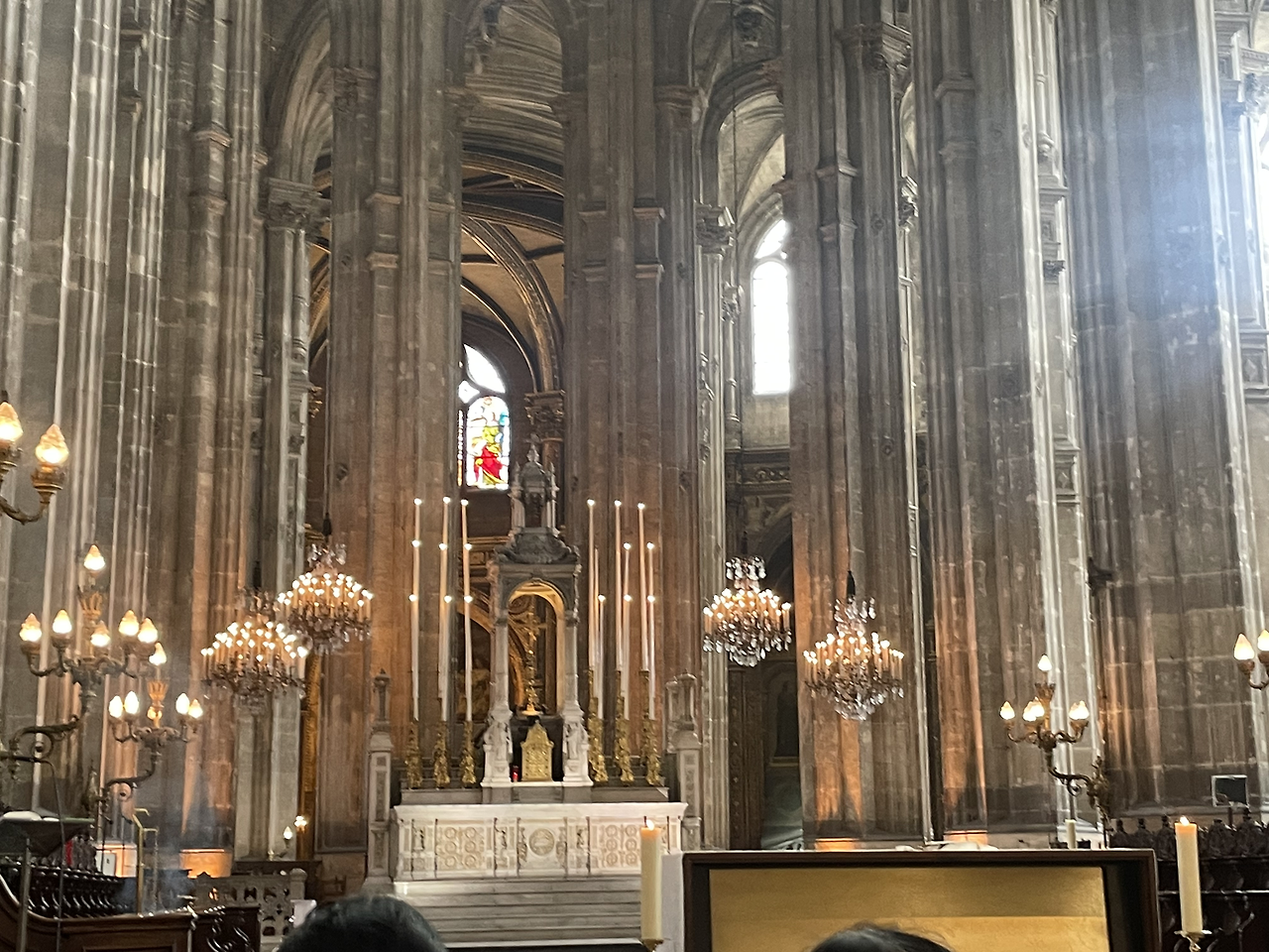 파리에 하루 전 도착했지만, 기차가 중간에 멈추기도 하고 런던에서 예상치 못한 추위에 시달렸던 터라 몹시 피곤했는지 간신히 저녁만 먹고 모두가 깊은 잠을 자고 말았다. 호텔이 센강 주변이라 저녁에 산책이라도 하고 싶었지만, 긴장했던 몸은 도와주질 않았다. 아침에 일어나 빵을 사고 호텔에서 제공하는 커피를 받아 아침 식사를 가볍게 하고 일요일이라 성당에 갔다. 우연인지, 우리가 구한 숙소 주변에는 늘 성당이 근처에 있어 오가며 마음의 위안과 격려를 구하던 터였다. 성당에서 불어로 진행되는 미사를 드렸지만 천주교 미사 예식은 으레 비슷하여 불어로 미사를 보는 프랑스인들과 입을 맞춰 아멘! 아멘! 등의 기도는 따라 하며 미사에 참여할 수 있었다. 우리가 미사를 봤던 성당에는 큰 파이프 오르간이 있었는데 파이프 오르간으로 반주가 연주되고, 불어로 불려지는 성가는 그야말로 천상의 멜로디였다. 한 소 절도 따라 부를 수 없어도 음악의 아름다움은 어제 우리의 긴장을 단숨에 무장해제시켰다. 아침부터 안색이 좋지 않던 첫째도 파이프 오르간 연주에 감탄하며 표정이 좀 나아져 보였다.
