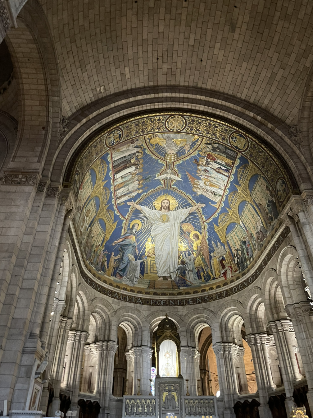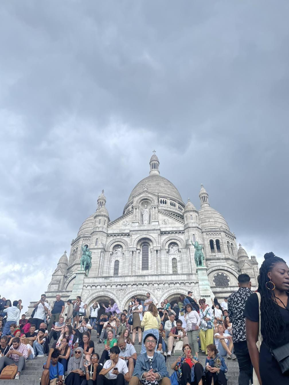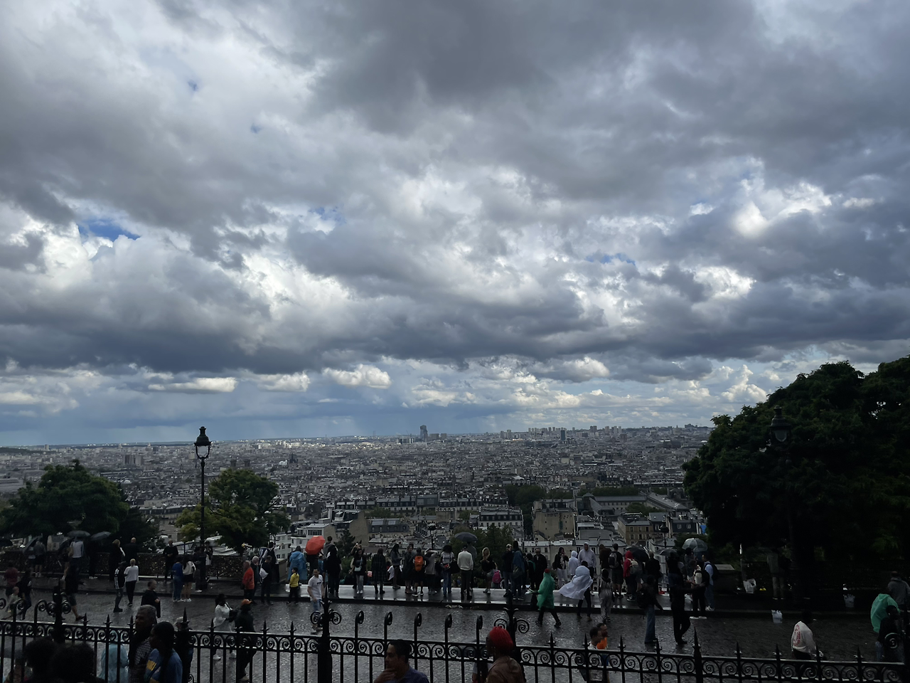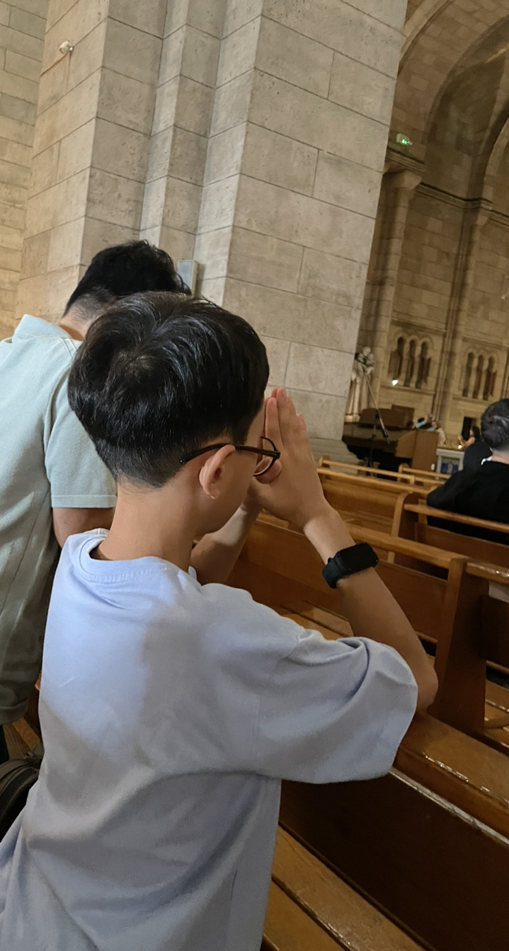 사진 촬영을 마치고 몽마르트르 언덕에 갔다. 어느새 날이 흐려져 저 위에 먹구름도 몰려오는 듯한 날씨가 되었지만, 그 또한 어찌나 낭만적인지. 파리는 흐려도 맑아도 비가 와도 낭만적인 정말 묘한 도시다. 몽마르트르 언덕 위에는 사크레쾨르 성당이 있는데, 입장하려는 사람이 많아 줄이 다소 길었다. 함께 들어가 보자고 하니 아이들이 굳이 줄 서서 성당을 들어갈 필요가 있냐며 몽마르트르 언덕의 계단에 앉아 쉬고 싶어 했지만, 여기까지 와서 성당에 안 들어가는 건 좀 아쉽다며 아이들을 졸라 함께 줄을 서 들어갔다. 줄 서서 들어오기는 싫다더니 성당에 들어가자 높은 천장의 성스러운 천장화, 아름다운 스테인드 글라스까지 성당의 황홀한 아름다움에 마음을 빼앗겼는지 남자 셋이 모두 기도를 한다. 무슨 기도였을까. 나는 그저 감사하다는 말 뿐이었는데…. 내가 오히려 남자 셋의 기도를 기다리다 남편과 아이들이 기도를 마치자 이제 나가자며, 성당 밖으로 나왔다. 나와보니 그 사이 비가 내렸었나 보다. 비가 꽤 내렸었는지 그 많던 사람들이 어디론가 사라지고, 물이 흥건하게 젖은 몽마르트르 언덕을 볼 수 있었다. 노을 지는 몽마르트르의 고즈넉한 모습은, 관광객들로 만나기 힘든 풍경인데 우리가 그 풍경 속에 있다는 게 다시금 감사하고 마음이 벅차올랐다.