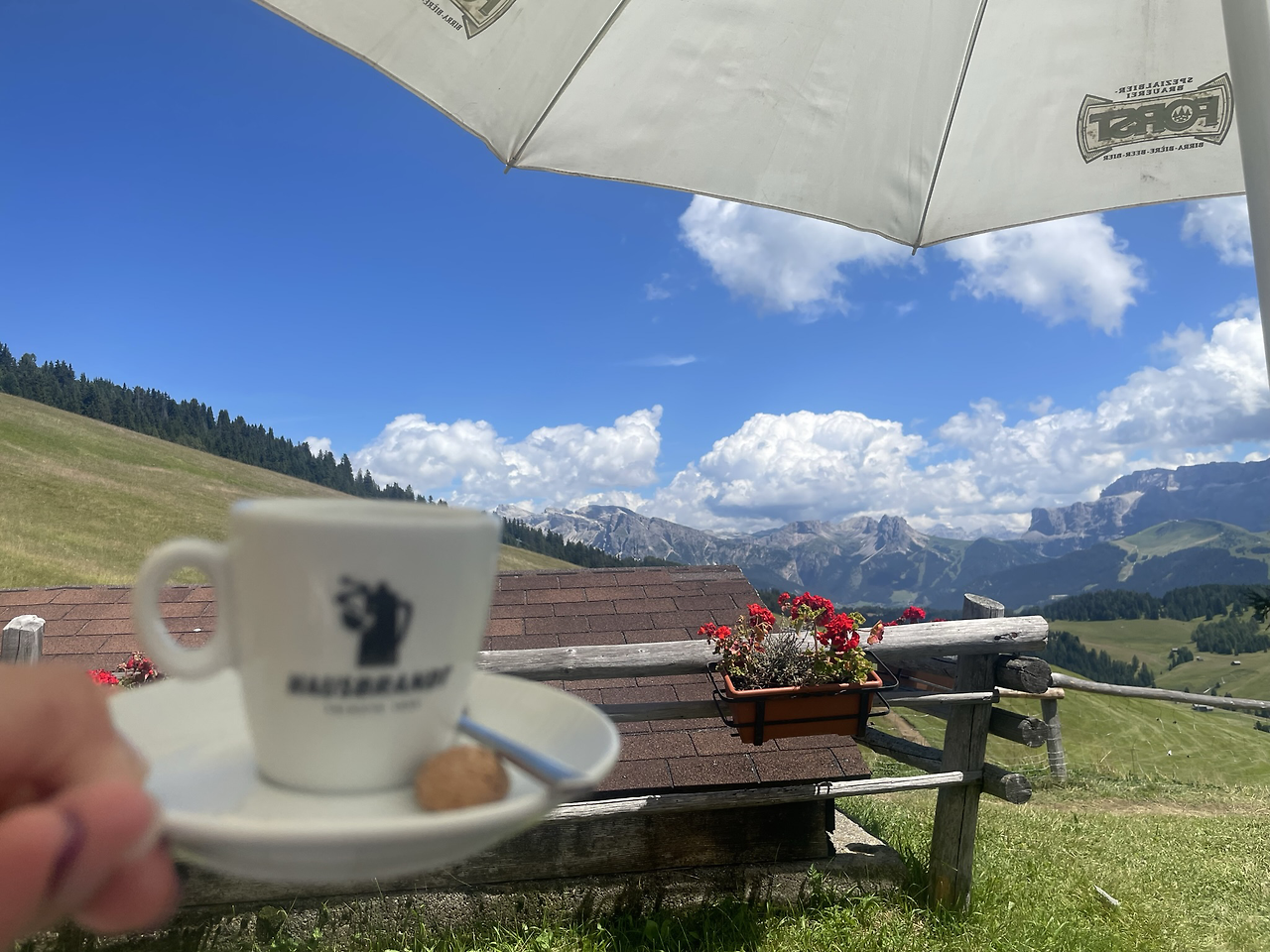 아들들의 호응이 좋아 ‘알페 디 시우시’에서 내려가면 ‘세체다’를 오르려고 했는데, 산장 휴식이 달콤해 트래킹 시간만큼 충분한 시간을 쉬다 보니 예상 시간보다 늦어졌다. ‘세체다’는 내일 가기로 하고 일어선다. 이제 케이블카가 있는 곳으로 다시 내려가고 오늘은 여기까지만 산행하자니 아이들 얼굴이 환해진다. 등산은 진정 나만의 행복인 건지,,, 케이블카 타는 곳까지 내려와 축구 게임을 하고 싶은 두 아들 덕에 에스프레소를 한 잔 마시며 푸릇푸릇한 산세를 눈에 담는다. 얼마나 많이 올라갔는지, 얼마나 많이 다녀왔는지는 중요하지 않다는 것을, 함께 웃으며 여기에 있다는 것이 소중한 것임을 다시금 새기며 축구 게임에 이겨 신난 큰 애와 져서 분해하는 둘째를 보며 이는 웃음이면 충분하다는 생각이 든다. (하지만 남편에게 애들 다 키우고 우리 둘이 열흘만 돌로미티 여행하자고 이야기했다. 오빠, 오빠마저 싫은 건 아니지? ㅎㅎ)