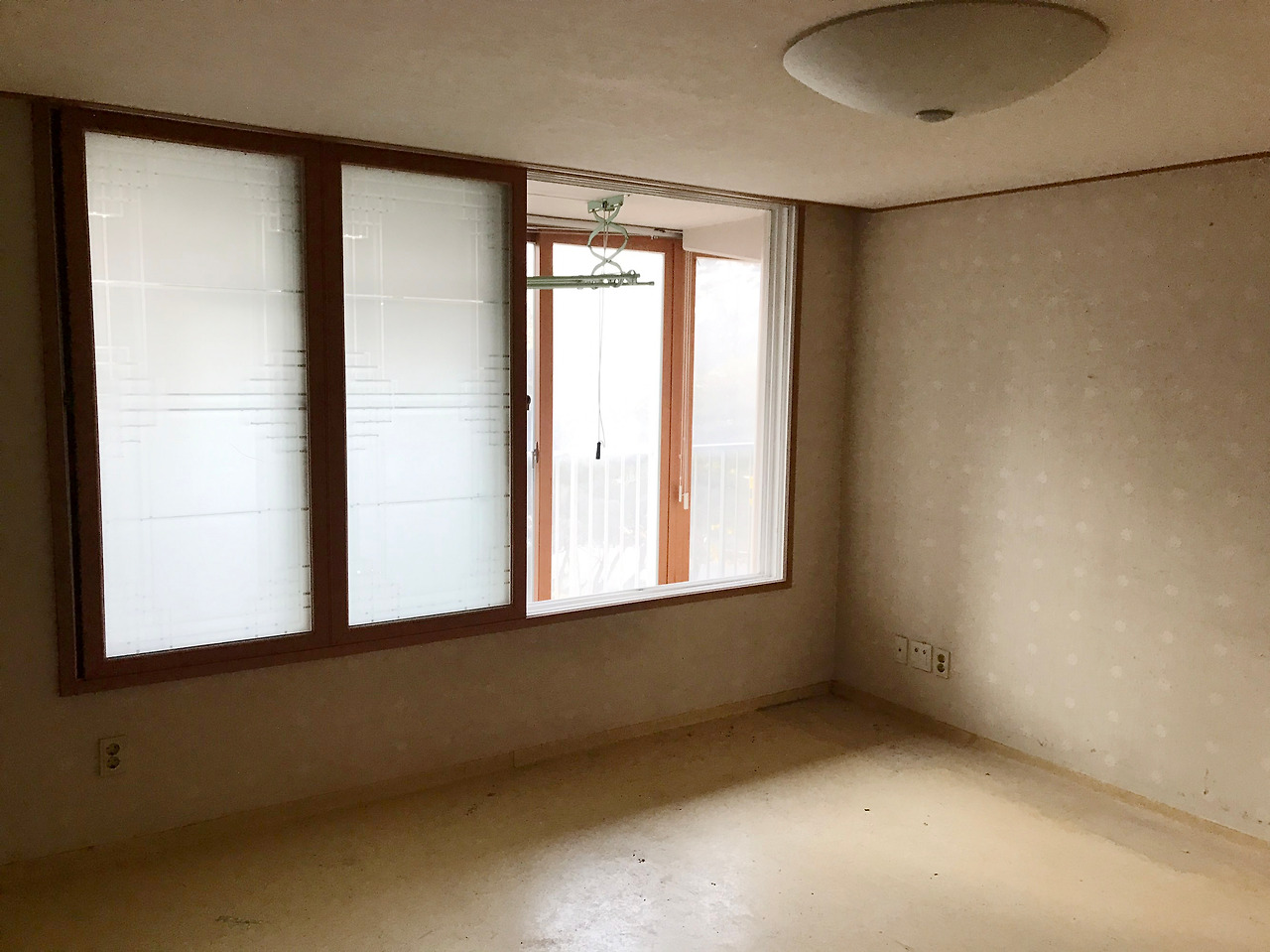 부부침실은 누렇게 변색된 벽지와 더불어 올드하고 고루한 디자인의 조명, 창문 밖으로 보이는 오래되고 축 늘어진 건조대 때문에 아이가 있는 젊은 부부의 방으로는 보이지 않았습니다.