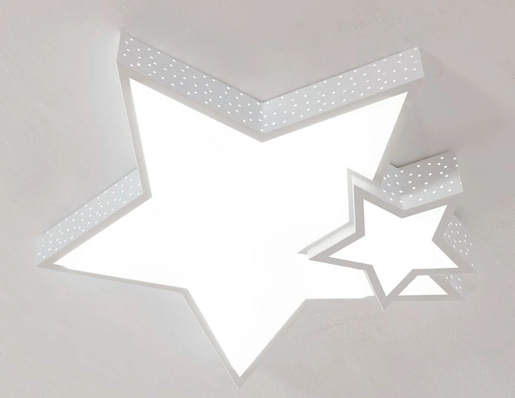 핑크색 소녀의 방에는 반짝이는 두 개의 별이 붙어있는 ‘LED 팅클 방등 50W’ 제품을,