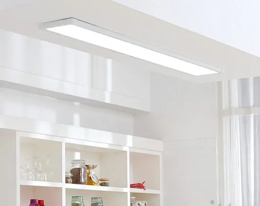 좁은 형태의 주방에서 부피가 크고 화려한 조명을 사용하면 더욱 답답하고 좁아보이게 됩니다. 이럴 때는 슬림한 형태의 조명을 선택하거나, 매입형 조명을 설치하여 최대한 시야를 방해하지 않도록 하는 것이 좋습니다.