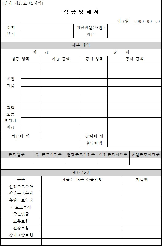 급여명세서양식