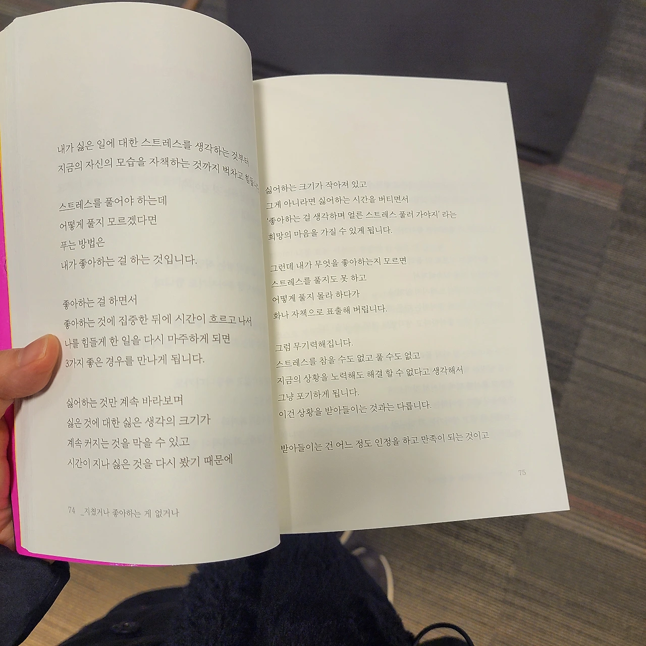 편안하게 걷다가 손에 잡히는 책을 읽었다. 마음을 다독여주는 책을 발견했다. 그때 그 시절 베스트셀러 코너에 가장 최근 베스트셀러 부분에 놓인 책이다. '지쳤거나 좋아하는 게 없거나'. 그래, 지친 하루다. 힘들지만 그래도 난 좋아하는 건 많다. 오늘따라 좀 지쳤을 뿐. 말장난하거나 너무 멋에 취한 에세이는 좋아하지 않지만 '글배우'라는 작가의 이름을 들어봤기에 집어 들어 읽었다. 일단 뒤를 보았는데,