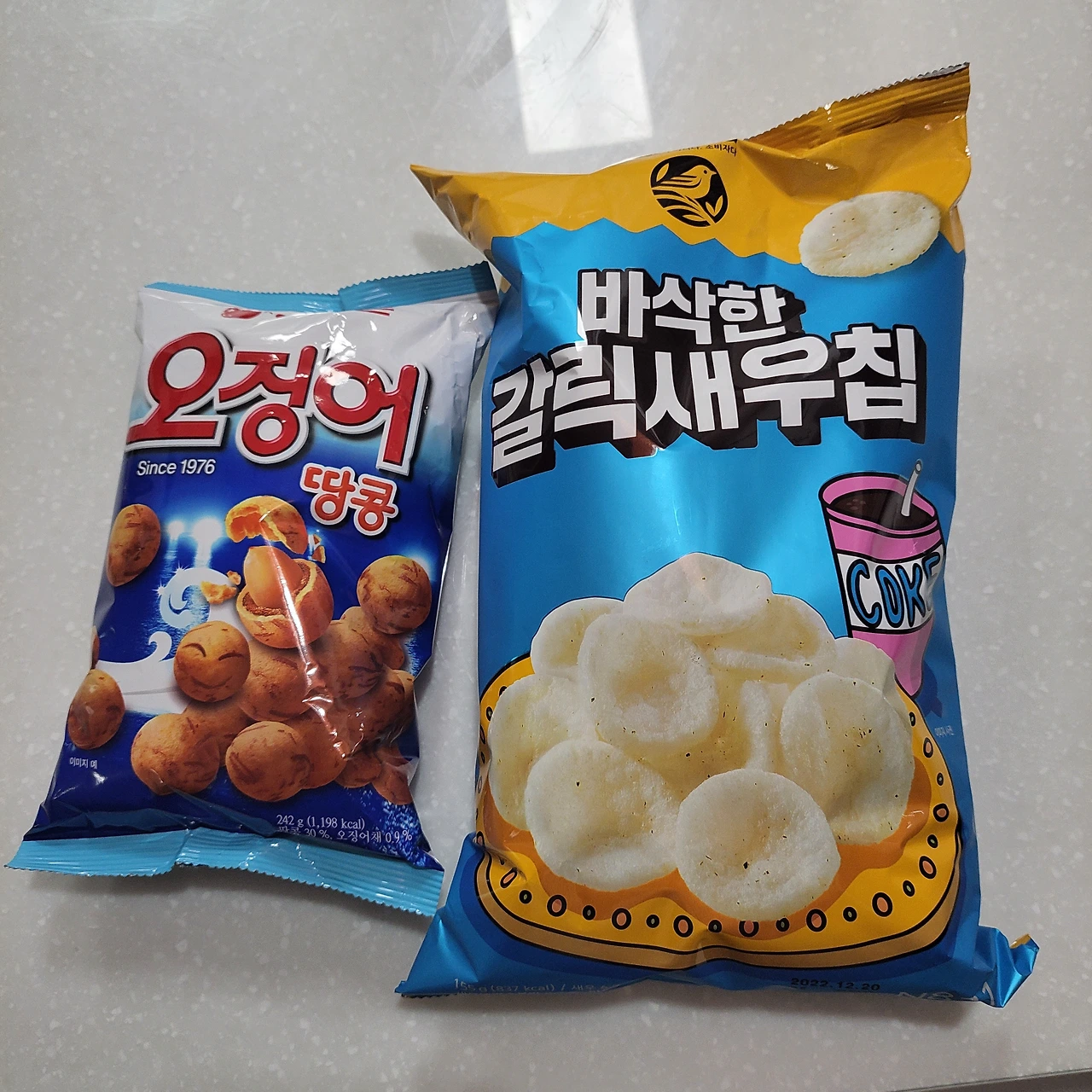 이럴 때 오징어 땅콩을 하나 사서 같이 먹어요.