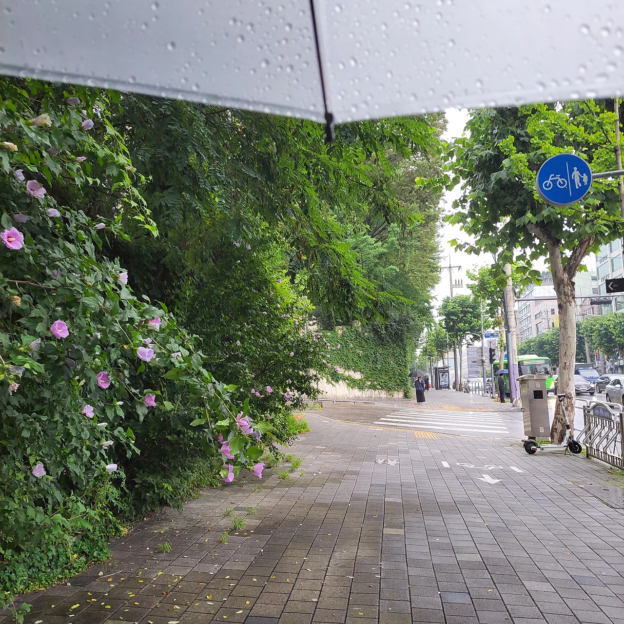 우산쓰고 한산한 커피솝 찾아 가는 길