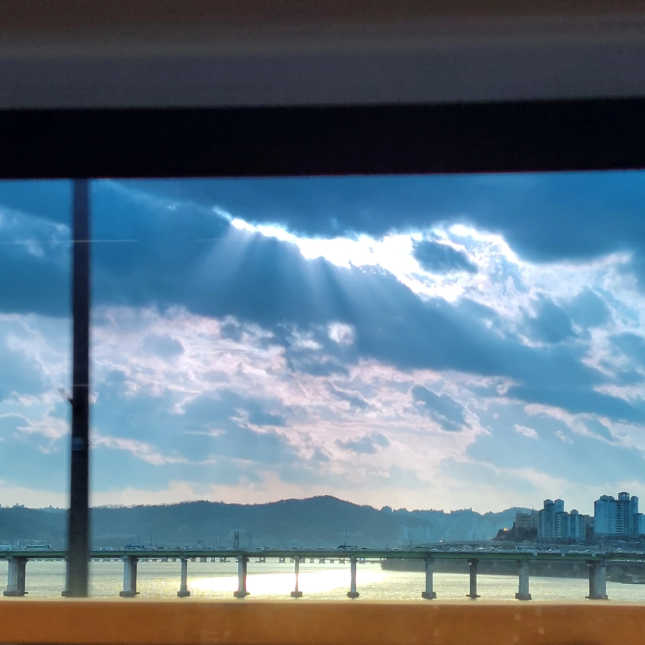 구름 사이로 햇빛이 비추는 풍경을 보면