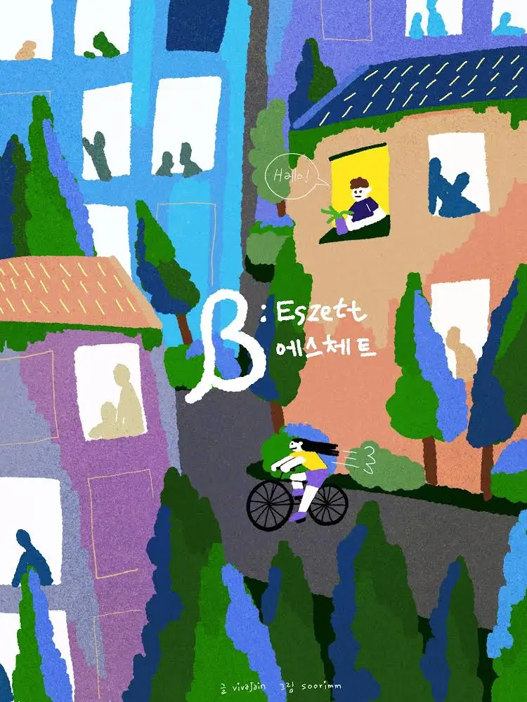 <나의 독일 ABC>의 마지막을 독일어 공식 사전에도 없는 ß로 마무리하게 된 것에는 이유가 있다. 독일어를 처음 배울 때부터 나는 어쩐지 ß가 마음에 들었다. 생전 처음 보는 알파벳으로는 세 개의 움라우트 알파벳도(Ö, Ä, Ü) 있었지만, 에스체트는 그 생김새가 어쩐지 유난히 흥미롭게 다가왔기 때문이다. 발음하기 어려운 움라우트 알파벳들에 비해 된소리 발음에 익숙한 한국인인 나에게 에스체트는 더 정감이 가기도 했다. 필기할 때 직접 손으로 에스체트를 쓸 때면(사실 처음에는 그렸다고 하는 것이 더 정확할 것이다) 낯선 언어를 새로 배우는구나 싶은 느낌에 홀로 우쭐해하기도 했다.