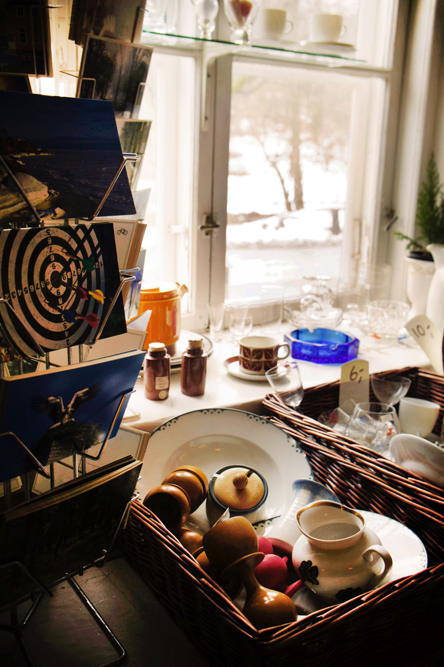 창가에 놓인 빛바랜 달라허스트며 마트료시카,