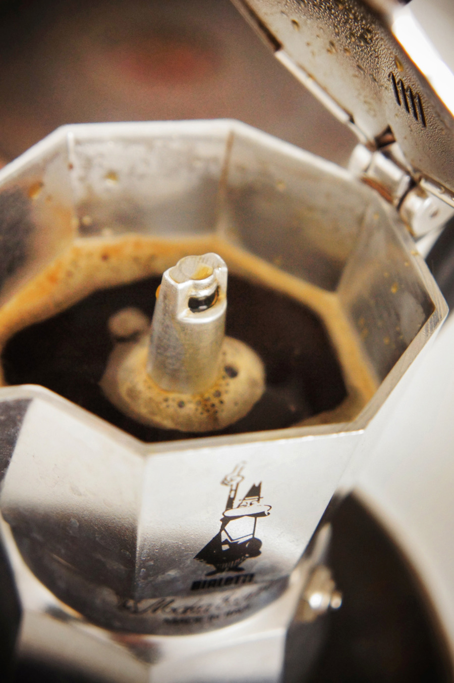 모카포트 속 커피가 끓어오르기를 기다리는