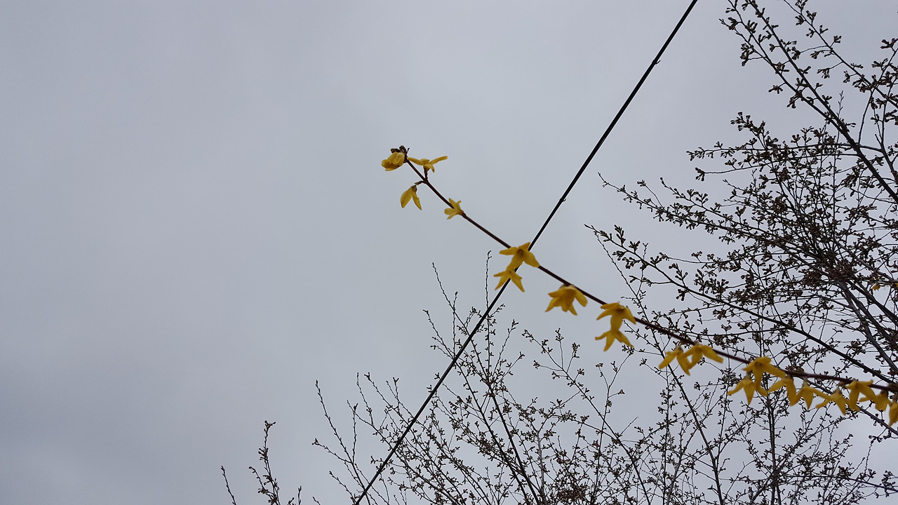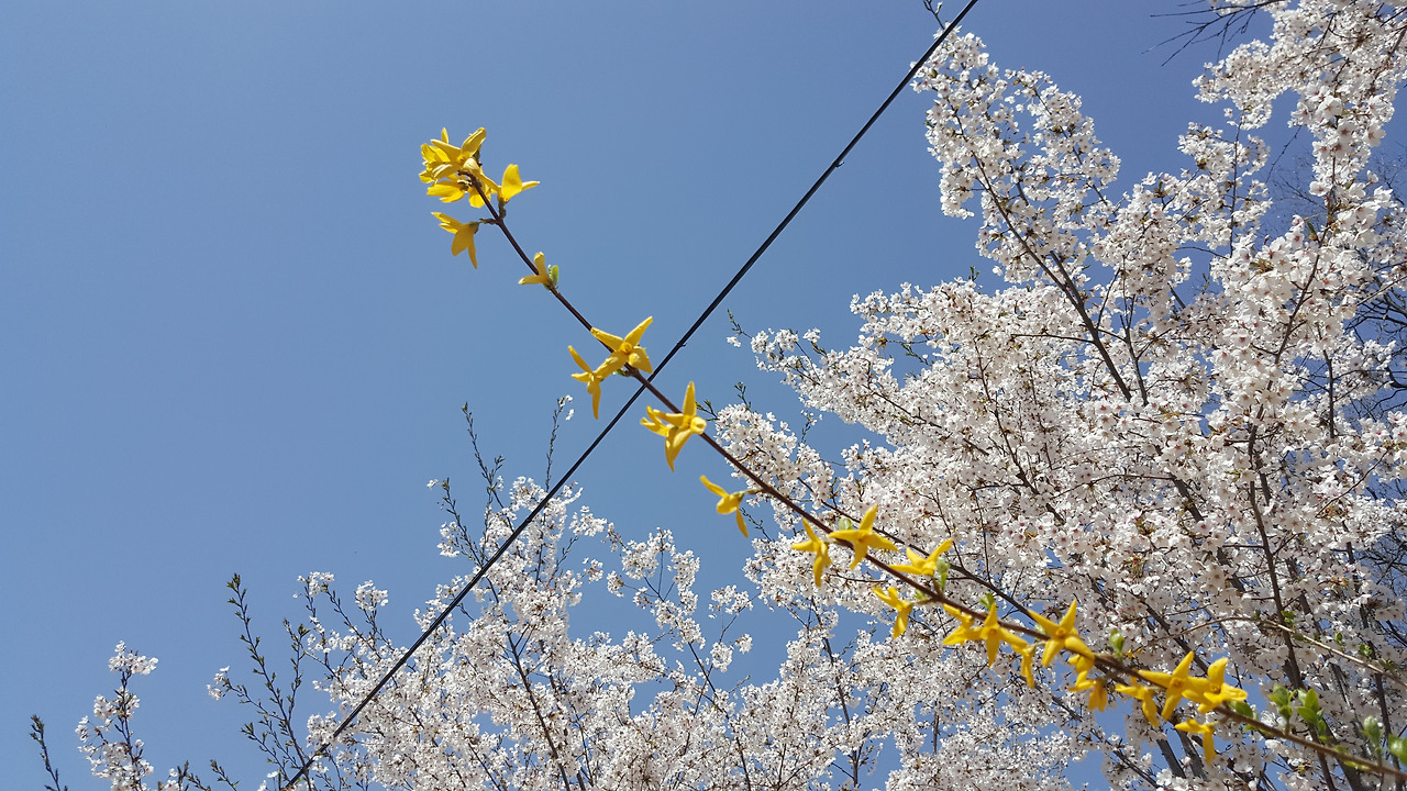 그 날과 같은 길을 따라 산책을 하다가 높이 뻗은 개나리를 다시 만났다. 벚꽃 덕분에 전처럼 외로워 보이지 않았다.