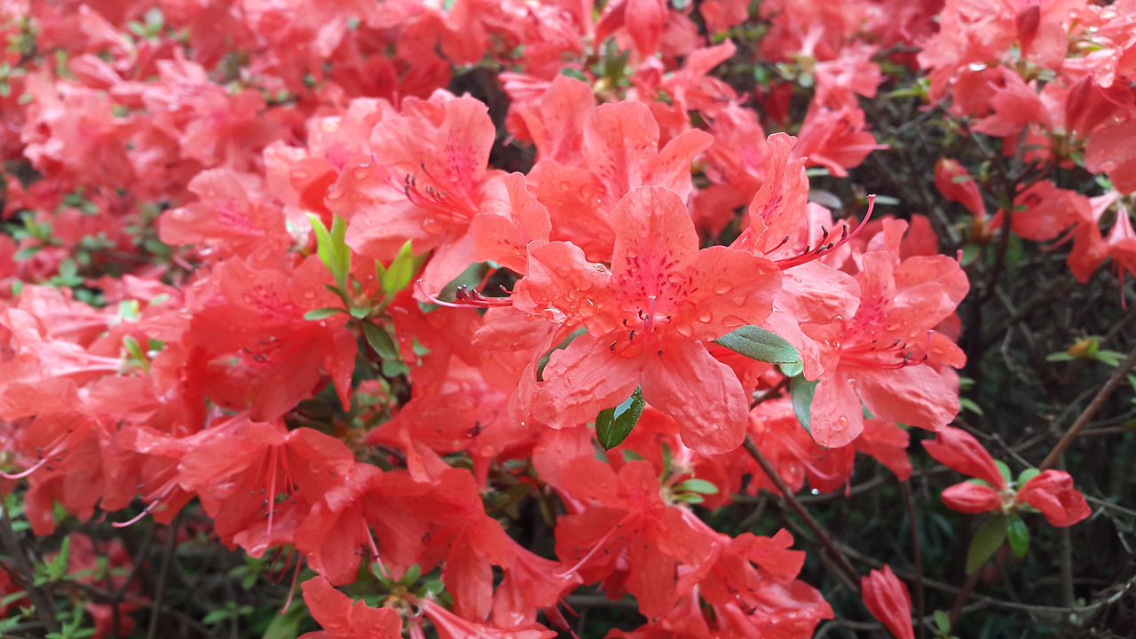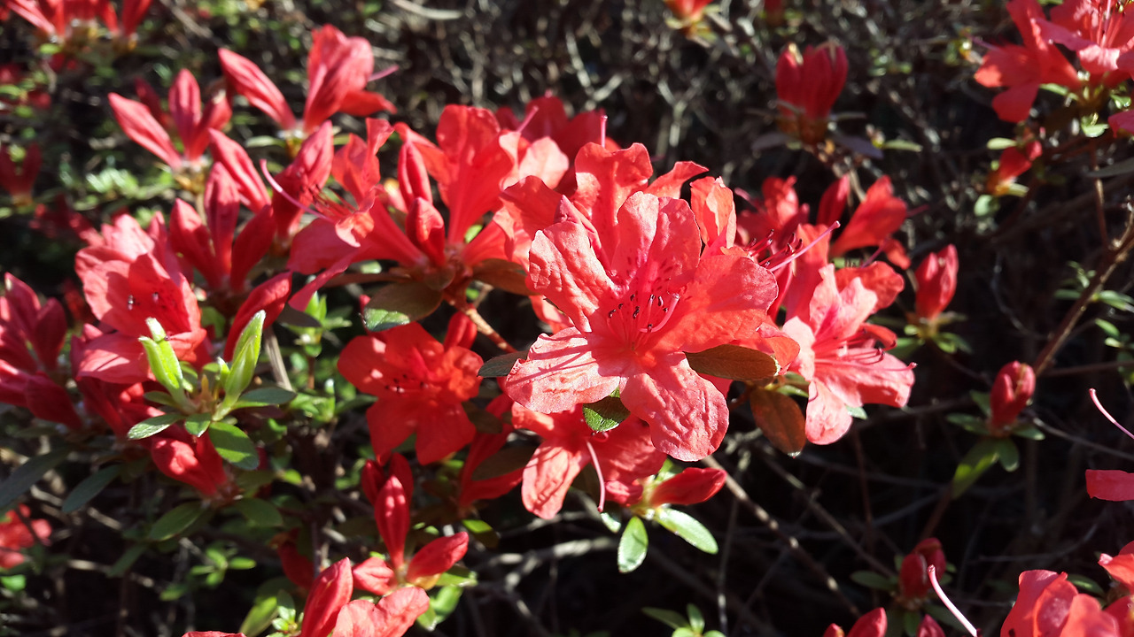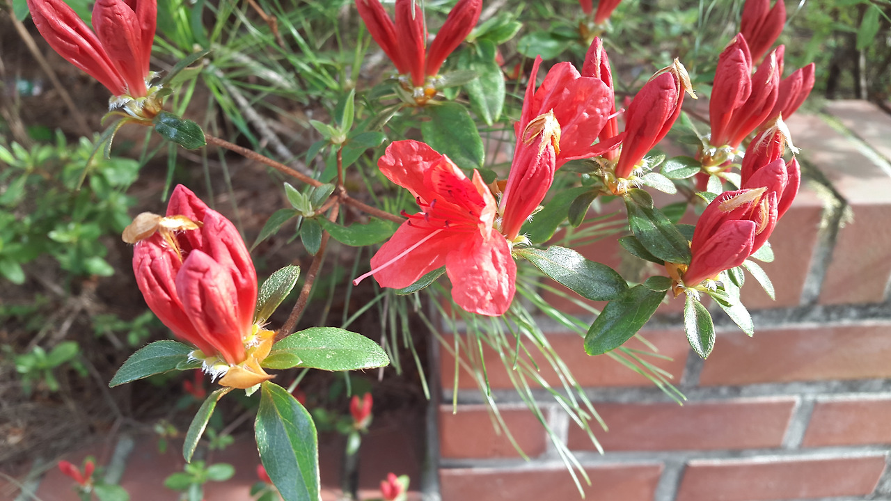 아침 햇살 때문에 색감이 제대로 담기지 못했지만 그래도 많이 피었다. 이렇게 다음 날, 또 다음 날, 다른 곳에 영산홍들이 만개한 것을 보고 오늘은 모두들 활짝 피었겠지 했는데 늘 아직이었다. 기다리는 것을 아는지 모르는지, 참 게으르다. 지켜보고 있기 때문에 더 느리게 느껴지는 걸까? 관심도 없을 때는 하루 아침에 피어난 것만 같아 보였었는데, 꽃은 절대로 한 번에 피어나지 않는다는 것을 알 수 있었다. 긴 겨울을 포함해 오랜 시간 힘을 모으고, 그 힘으로 껍질을 깨고 나오고 또 봉우리를 터뜨리고, 그렇게 피어난다. 꽃들에게 한 방이란 없다.