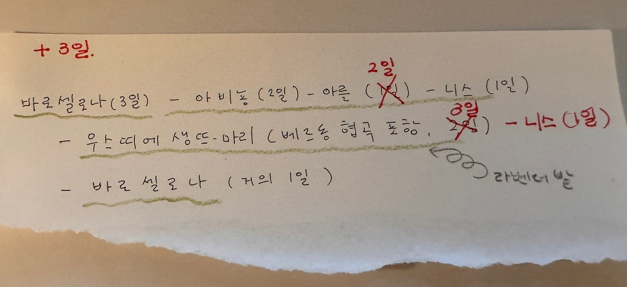 이 코스를 말로 풀어보자면, 바로셀로나가 처음이고 기대감 충만한 민들레님(아내)을 위해 바로셀로나 일정을 조금 더 잡으면서 시작했다. 이후, 기차를 타고 지중해 해변을 따라 프랑스로 이동한다. 첫 도시를 아비뇽을 택한 이유는, 운 좋게도 7월에 아비뇽 연극축제가 있어 축제와 더불어 옛스런 도시의 운치를 동시에 느낄 수 있는 절호의 찬스였기 때문이다. 운이 좋았다.