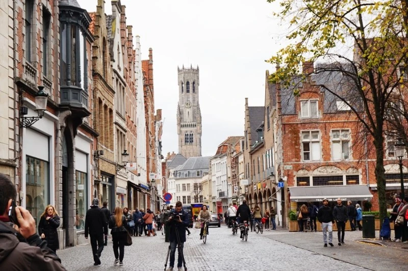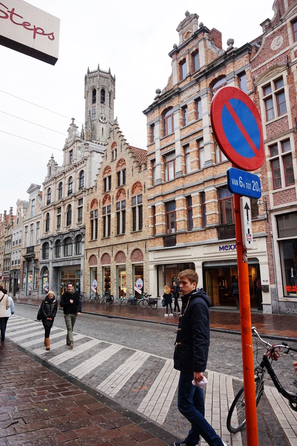 저 멀리 보이는 것은 브뤼헤의 종루. 높이 83m의 종루는 꼭대기에 전망대와 아름다운 종소리를 울리는 종이 47개 매달려있다고 한다. 전망대에 오르면 아기자기한 브뤼헤의 전경을 한눈에 감상할 수 있는데 빙글빙글 올라가는 계단을 366개나 올라가야 한다고 한다.