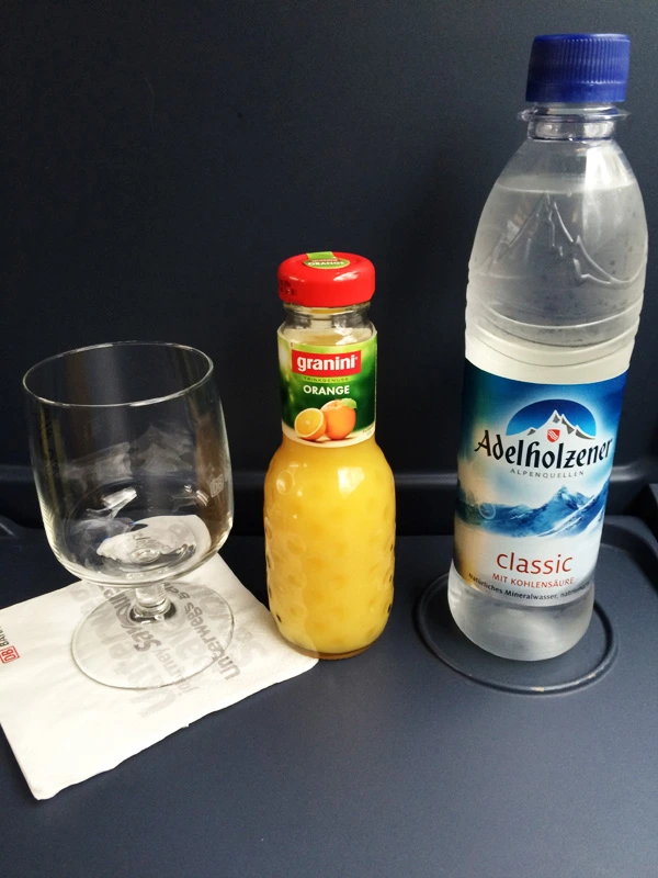 직원이 와서 마실 것을 먹겠느냐는 말에 1등석은 공짜로 주는 줄 알고 시킨 탄산수와 오렌지주스. 아니나 다를까 가져다주면서 영수증도 가지고 오더라. 6유로. 그래. 공짜가 어디 있겠어. 새벽부터 물 한 모금 못 마셨었기 때문에 오렌지주스 원 샷. 클리어.