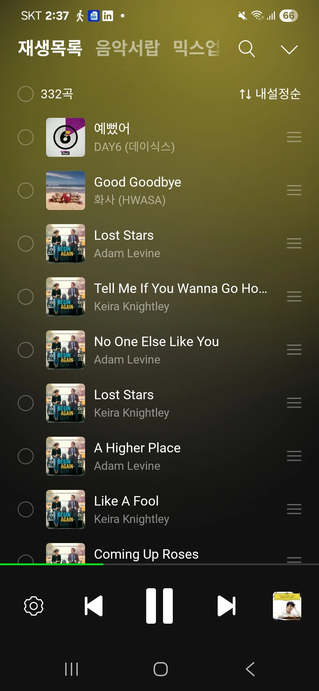 빵을 사기위해 들어간 베이커리에서 익숙한 '예뻤어'를 가진 후렴구가 나온다. 하지만 가수가 누구인지도 모르는 그냥 어디가면 꽤나 자주 나오는 감미로운 노래. 귀에 착착 감기면서 말 그대로 예쁜 노래였다. 하지만 오늘은 멜론을 검색해서 찾아보기로 한다. 듣고 있던 쇼팽의 <피아노 협주곡 1번>을 배신하고 <예뻤어> 를 듣기로 한다. 데이식스 노래다.