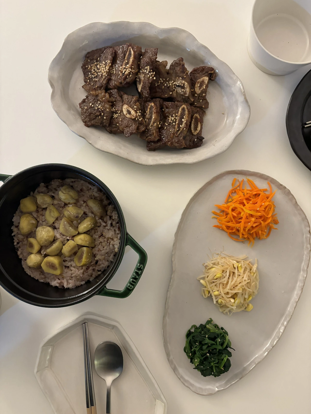 오곡솥밥, 콩나물 무침, 시금치 무침, 당근 볶음(결국 고사리는 다음날 끝냄)을 하고 나니 어느덧 3시간이 지나있었습니다.